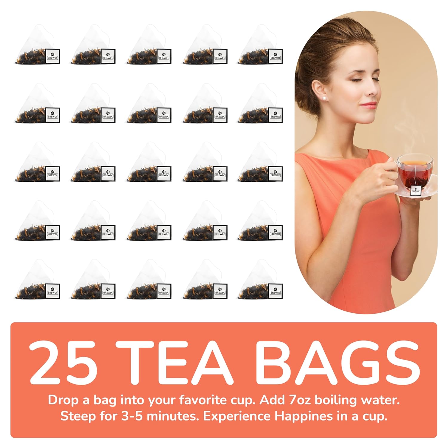 BREWIX, Peach Black Tea (25 Pyramid Bags) | Premium Black Tea with Peach | Floral & Refreshing | Iced or Hot | Caffeinated And Sugar-Free