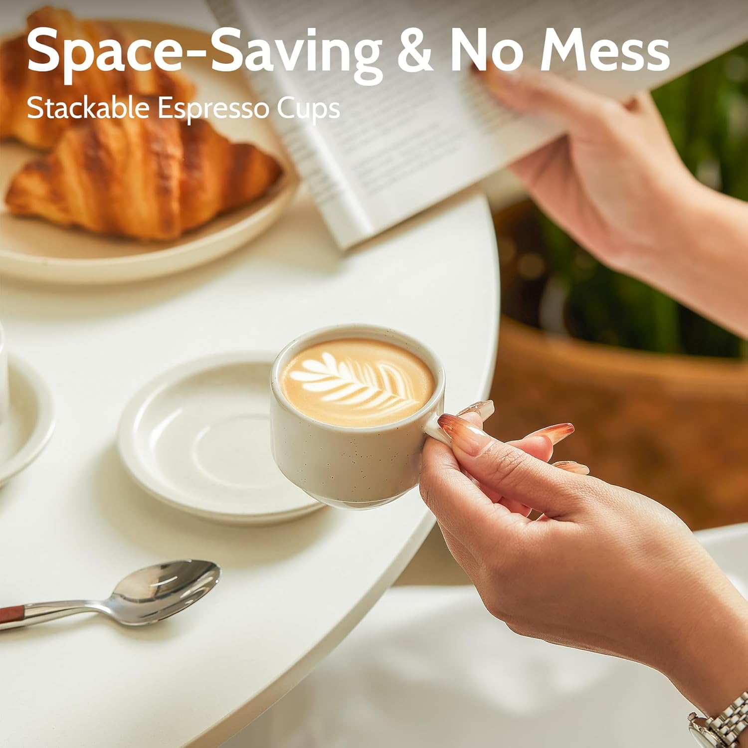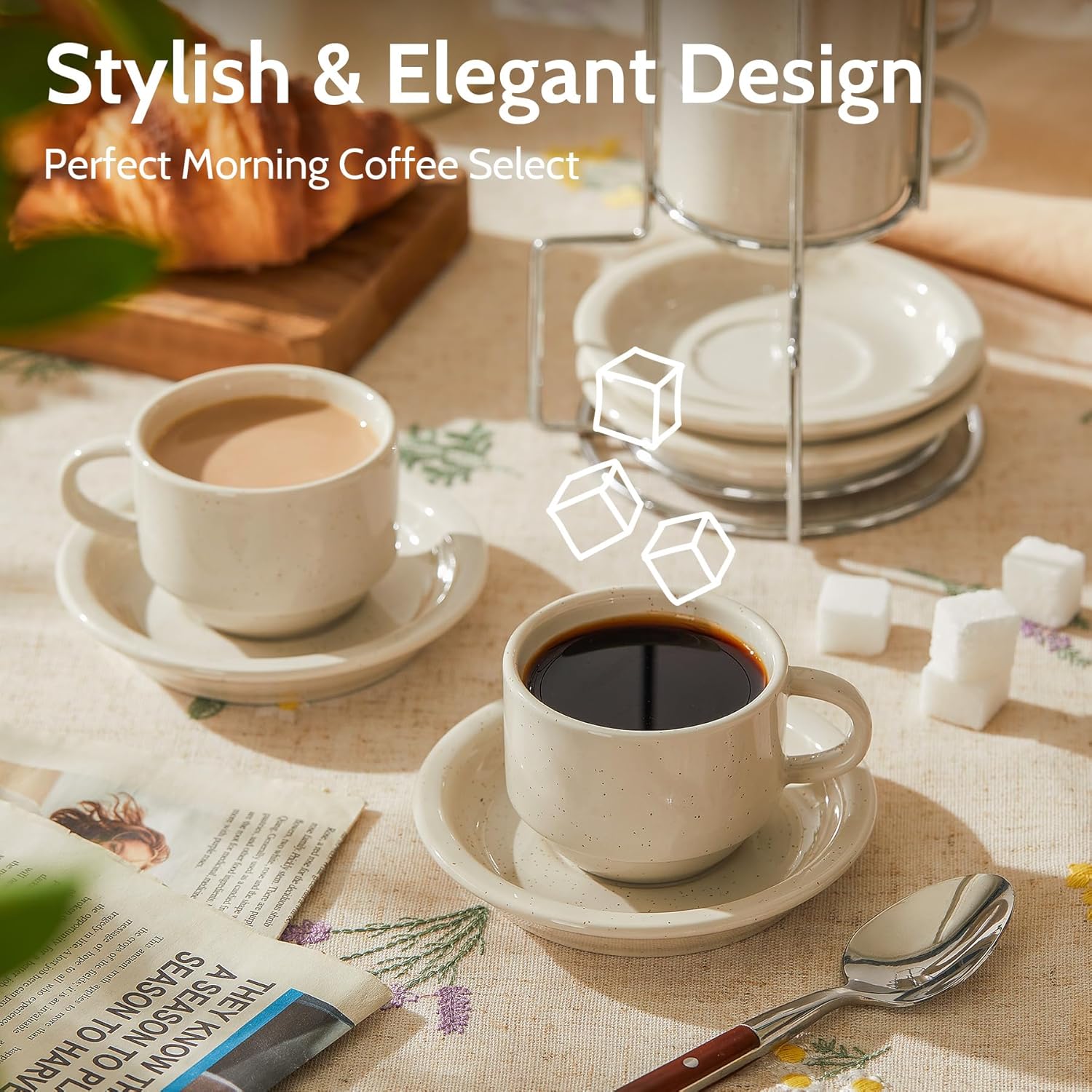 - SPILL-FREE ENJOYMENT: Innovative non-slip saucers ensure a secure, worry-free coffee experience, keeping your gatherings serene and mess-free.
