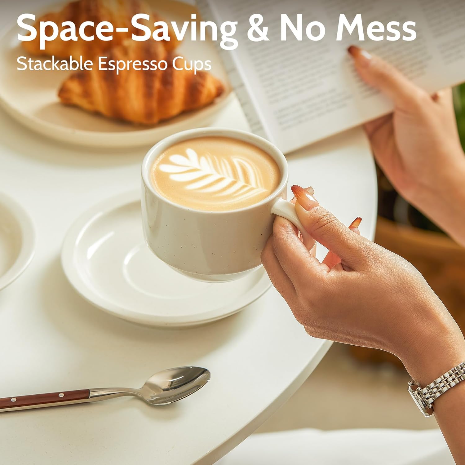 - CAFE-QUALITY AT HOME: 8 oz cups with saucers enhance your coffee experience, keeping drinks warm with elegant style.