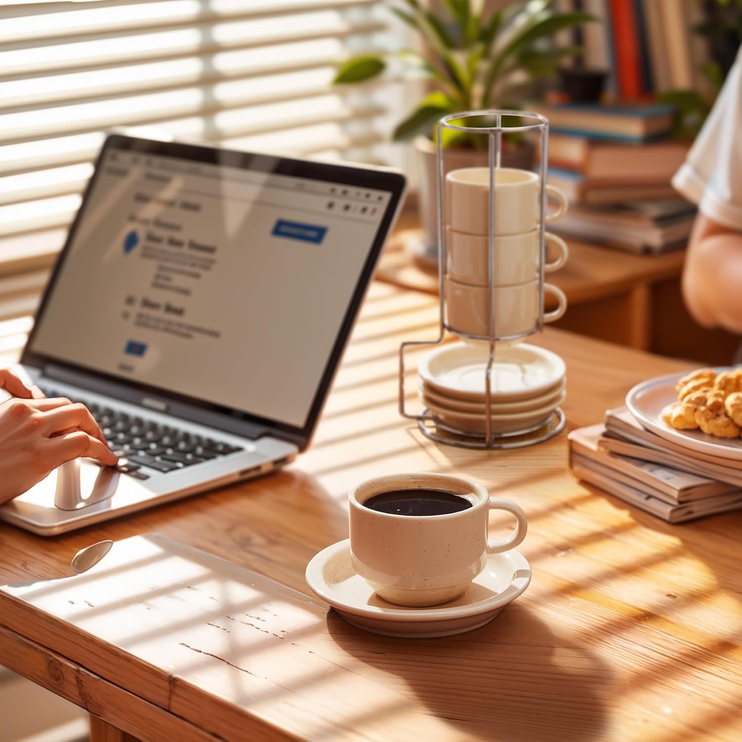 - SPACE-SAVING DESIGN: Our stackable espresso cups with a metal stand reduce clutter, keeping your coffee station neat. A compact, organized solution.