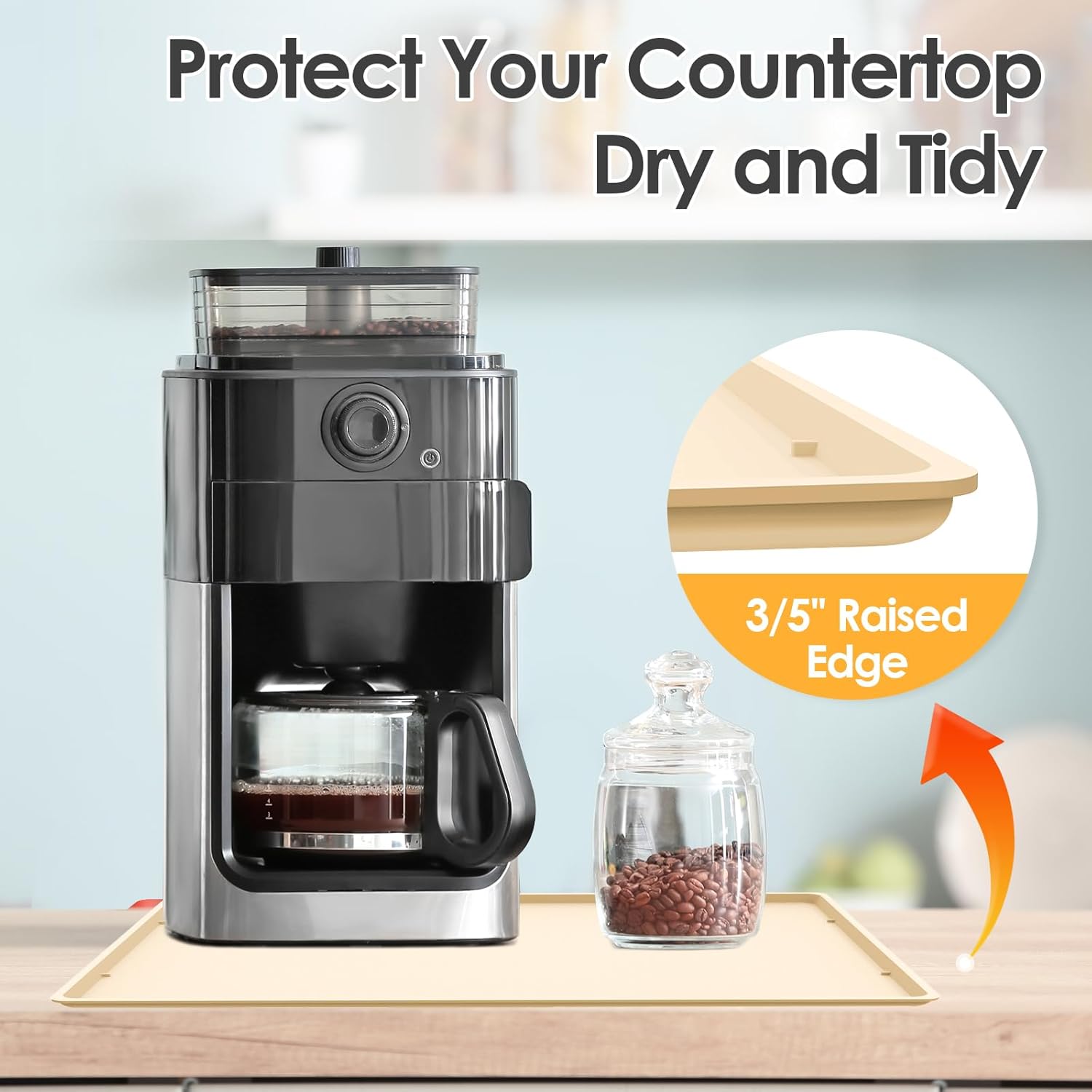 - 100% Water Does Not Flow Out: The coffee maker mat is built with 3/5" raised edge, like a tray and it can contain any liquid spills from the coffee maker. The premium material not only protect your countertop from scratches, especially protect the wood countertop, but also keep your your countertop tidy, clean.