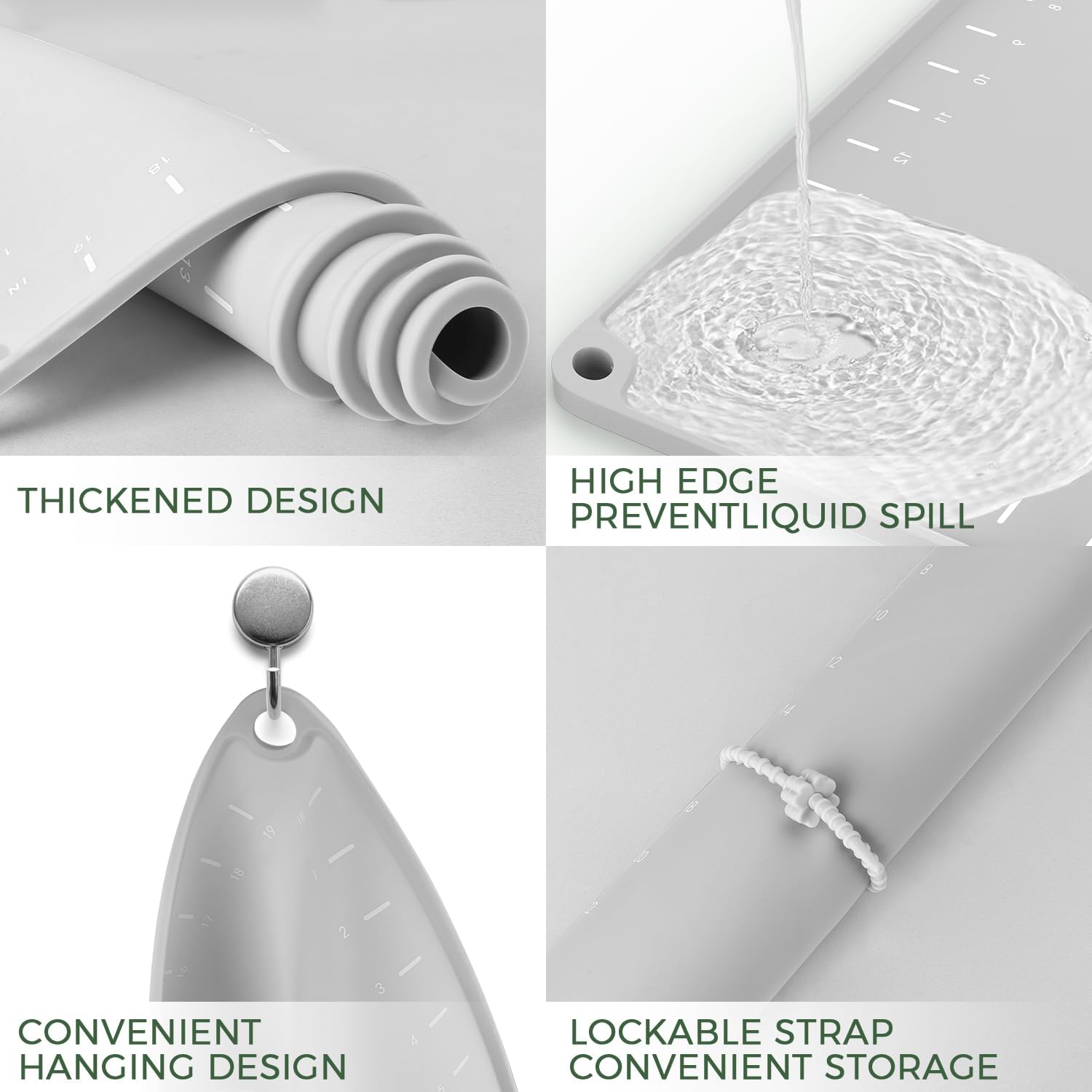 Silicone Baking Mat 24" x 16", Extra Thick Dough Rolling Mat with Measurements and Edge Heightening, Non-stick Food Grade Silicone Pastry Mat for for Pastry, Bread, Cookies, Pizza, Fondant, Pasta