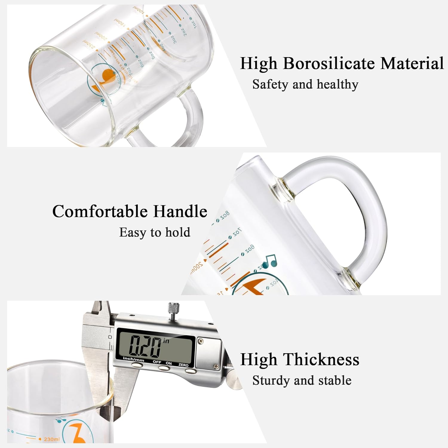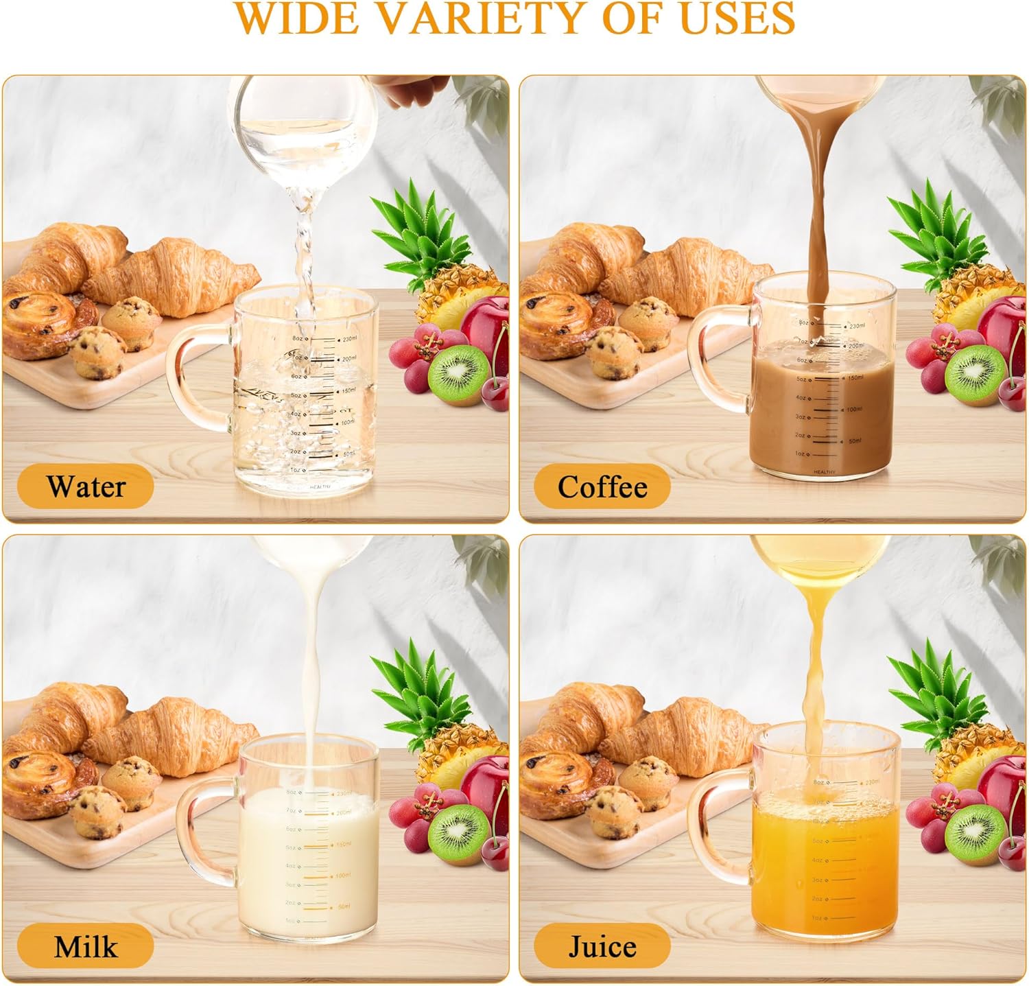 8 Oz Glass Measuring Cup, Espresso Shot Glasses, Clear Coffee Mugs for Hot or Cold Drinks With Handle, Microwave Safe Graduated High Borosilicate Cup (Black)
