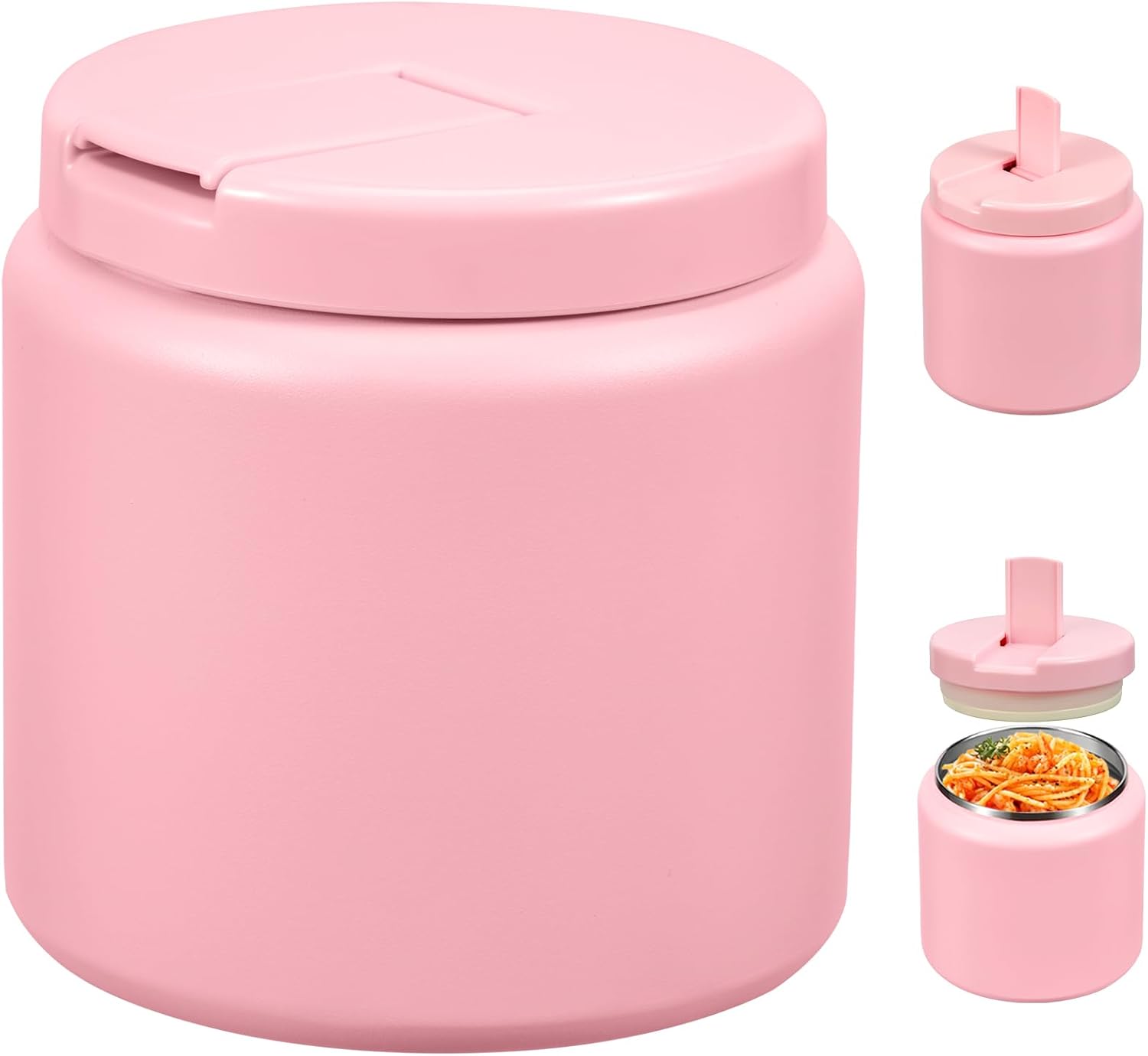 26oz Kids Thermos for Hot Food, Insulated Vacuum Food Jar with Buckle Lid, Stainless Steel Wide Mouth Leak Proof Insulated Lunch Container for School Picnic Travel, Pink