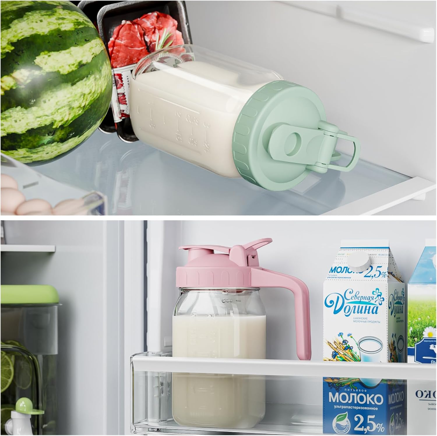 Breast Milk Pitcher Jug - 32 oz Glass Mason Jar Airtight Pitcher with Pour Spout Handle for Breastmilk, Iced Tea, Ice Drinks Storage Container(Green)