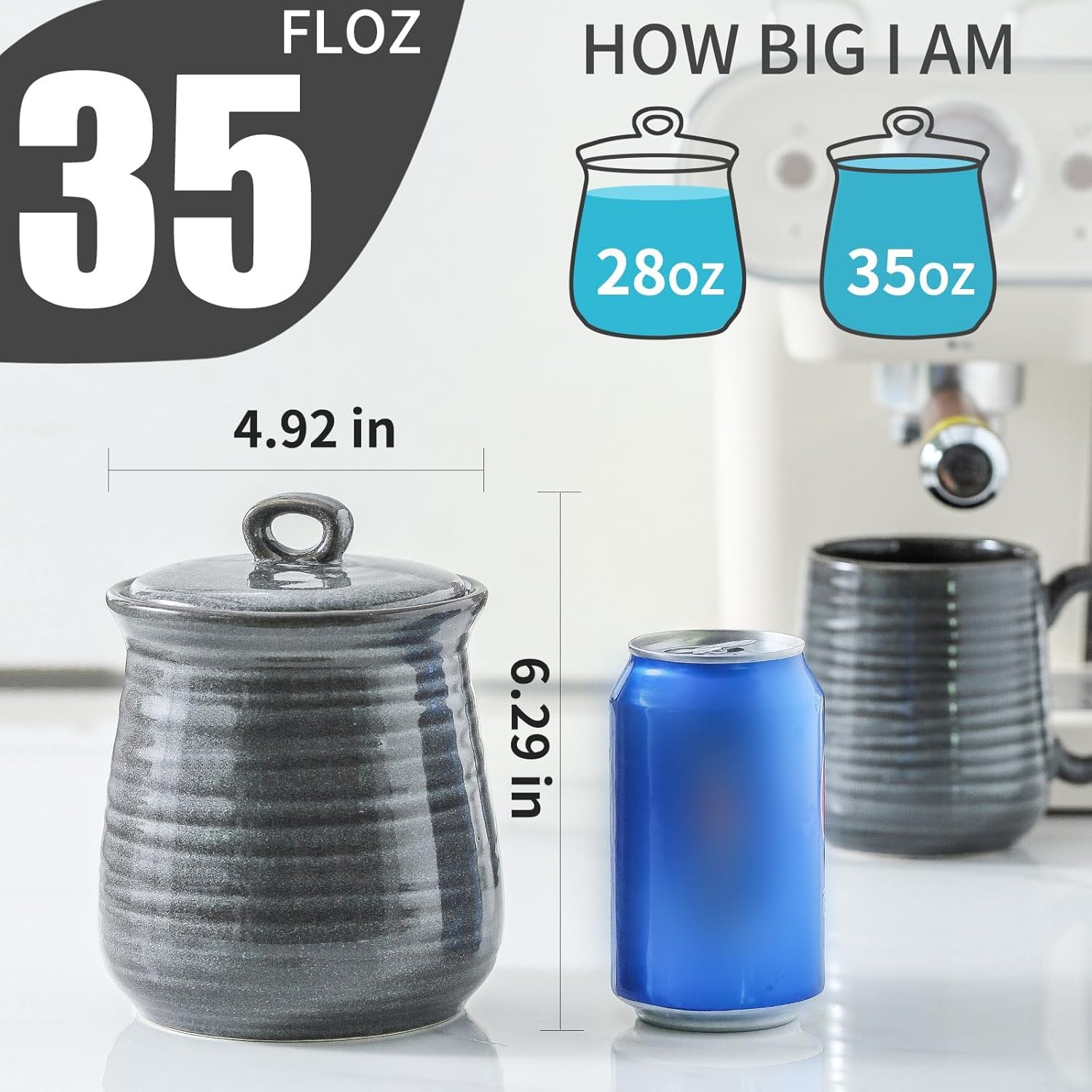 - 30 FL OZ Capacity: Ceramic container hold up to 30oz of various dry goods, including coffee beans, sugar, flour, and cereal; actual capacity may vary based on the density of items, offering versatile storage for multiple kitchen essentials; Note: The actual capacity of different objects varies depending on their density