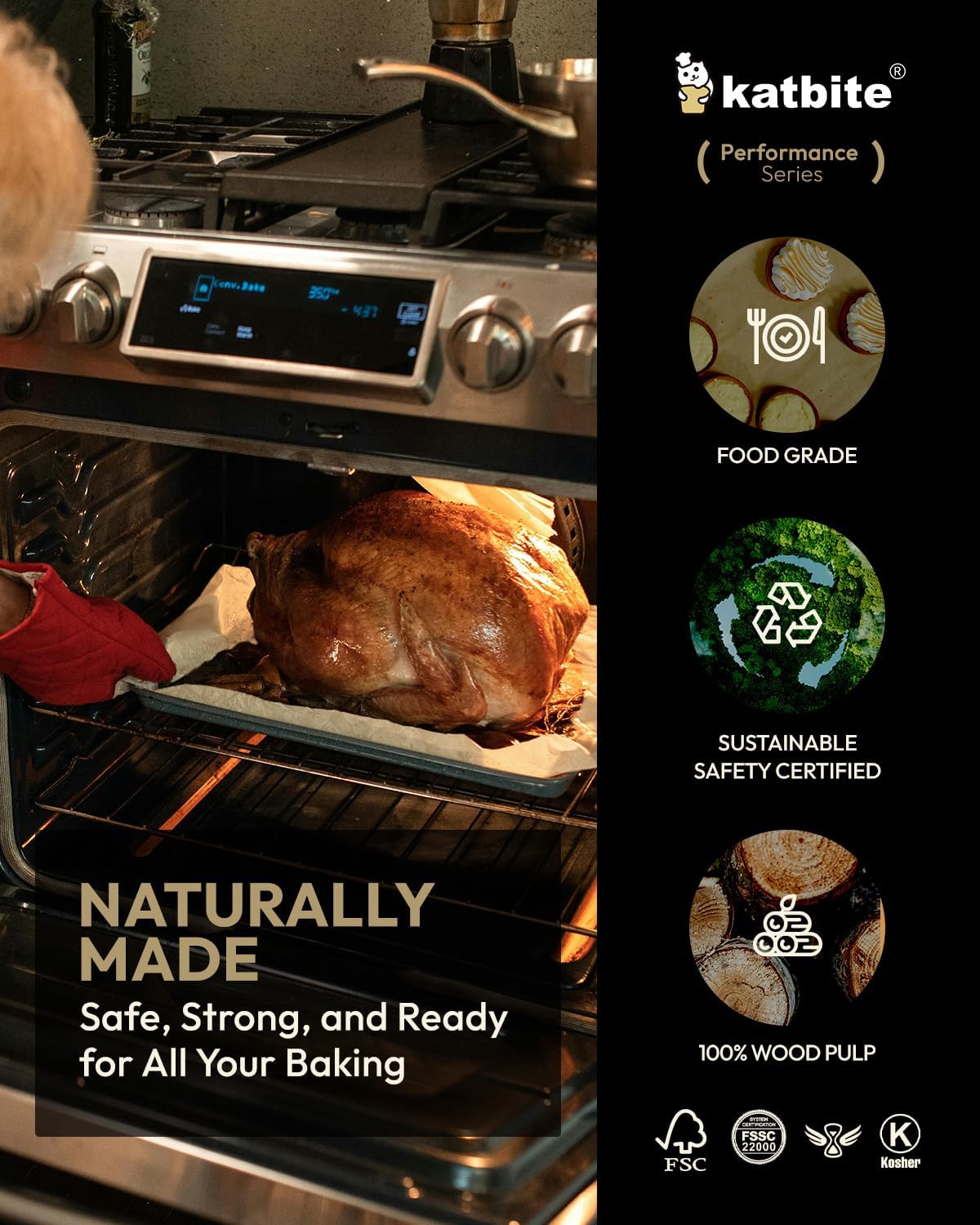 - Healthy & Natural: Certified by KOSHER and FSC, katbite parchment paper, part of the product, packaging and wrappings of paper are made from fsc-certified wood. Made from 100% natural wood pulp, our unbleached and fluorescent-free parchment paper ensures reliability without any safety concerns. Featuring food-grade silicone coating on both sides, these sheets provide a safe, non-toxic baking surface.Trust Katbite Balanced Series for a healthy, natural, and sustainable baking experience.