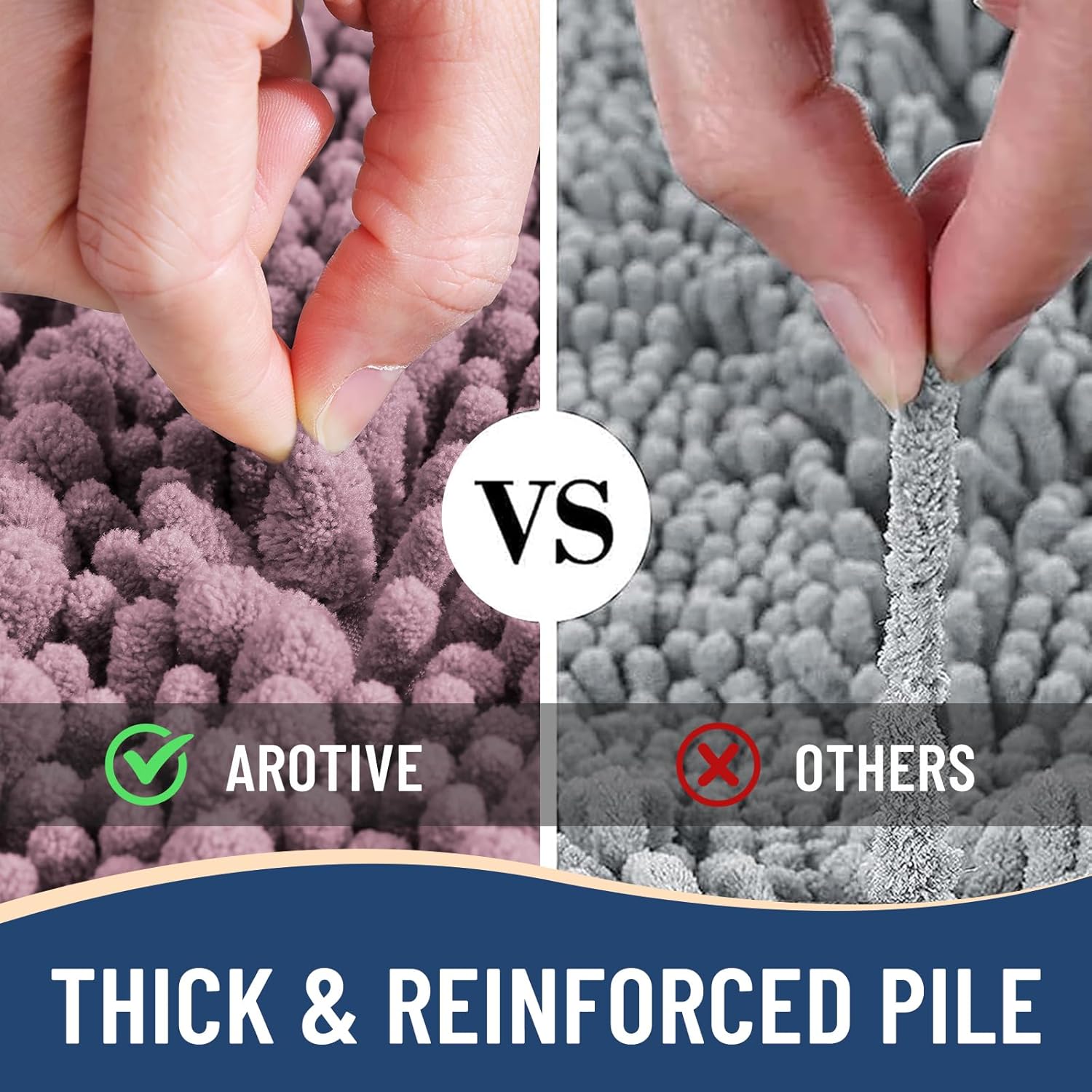 - Anti-Skid Backing: Arotive chenille bathroom rugs feature a non-slip bottom consisting of sturdy mesh PVC material that stops the bath mat from shifting and skidding. The middle layer is 4 mm memory foam, which can let you feel more comfortable when wrapping into the rugs. WARNING: Place bath mat on CLEAN DRY FLAT FLOOR ONLY. Water under bath rug can cause it to slip. Always keep the bottom of bath rug dry