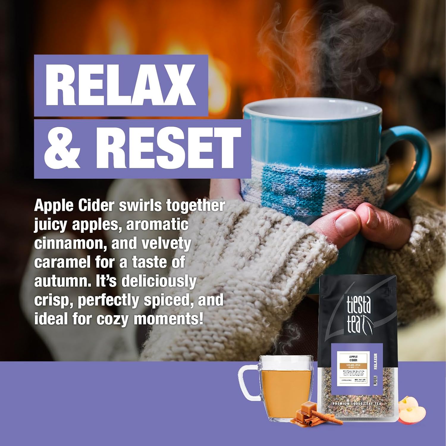Tiesta Tea - Apple Cider, Loose Leaf, Caramel Apple Herbal Tea, Non-Caffeinated Herbal Blend, Make Hot or Iced, Brews Up to 140-200 Cups, 16 oz Resealable Bulk Pouch