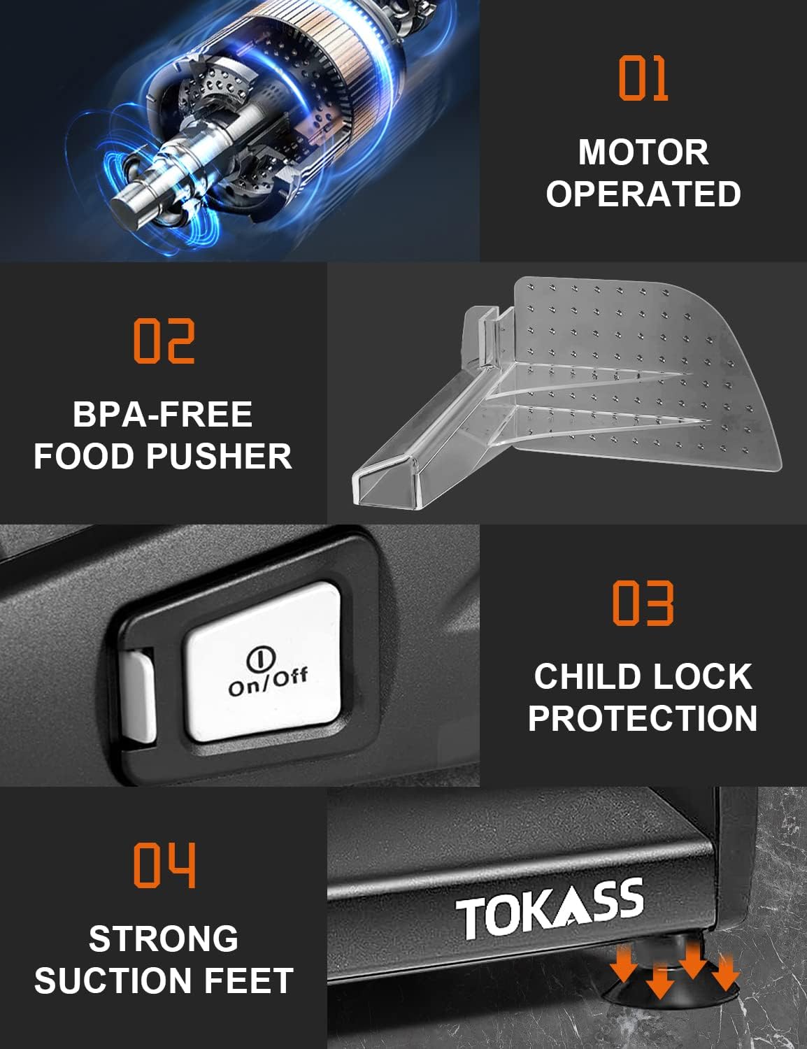 - [Safety Protection] Non-slip suction cup feet keep the deli slicer stable while working, and the food pusher also acts as a blade guard to help keep your fingers safe. The on/off switch provides added safety