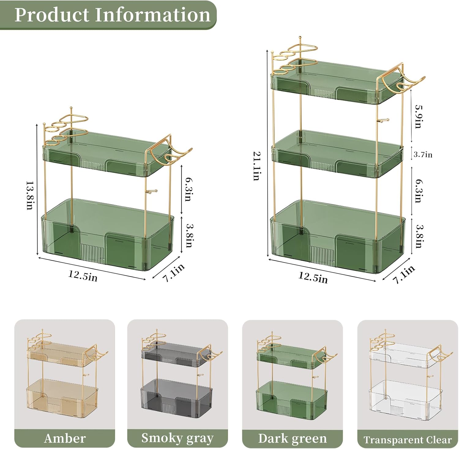 YCIA&DONE Bathroom Counter Organizer, Large Makeup Organizer Countertop, Shelf Storage, Vanity Tray, Easily Assemble for Bathroom Organizers and Storage, Undersink, Cabinet, 3 Tiers Green