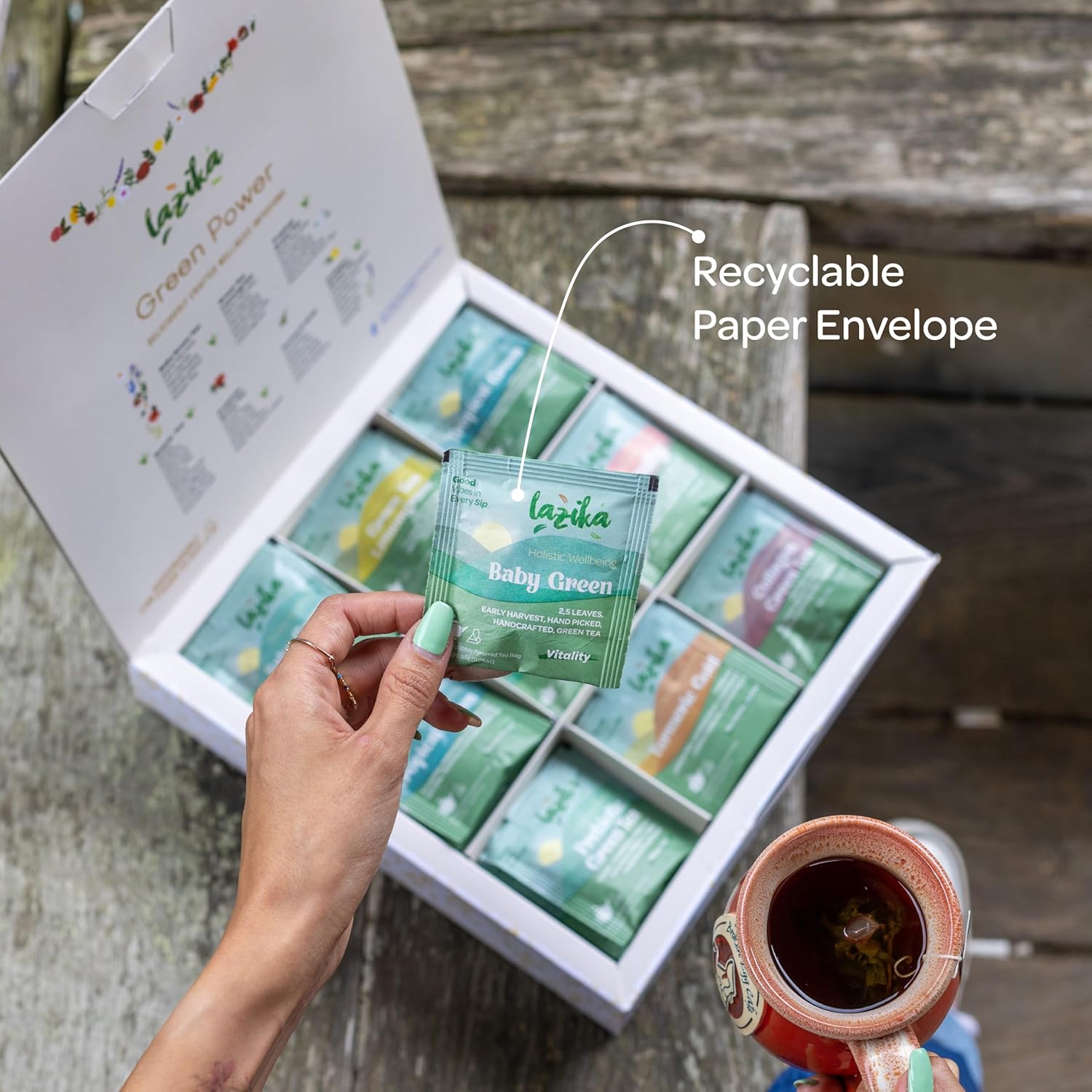 Lazika Green Tea Variety Pack with Lovely Presentation Box, 54 Counts, Green Tea Assortment Gift Set, Premium Collection with Pyramid Infuser Bag, Early Harvest, Handcrafted
