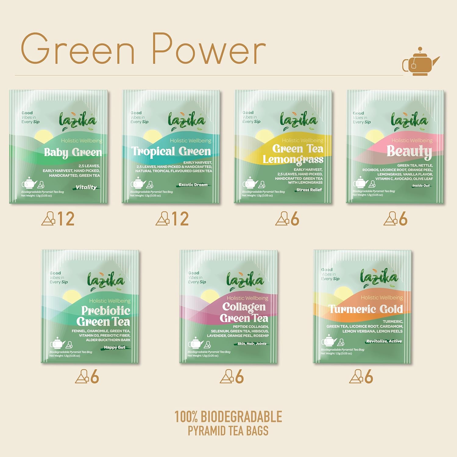 - FRESHLY BLENDED AND CAREFULLY PACKAGED: Lazika assorted tea variety packs are crafted from the freshest ingredients, ensuring a superior taste. Each pyramid tea bag is meticulously prepared and hygienically packaged to preserve its quality and flavor.