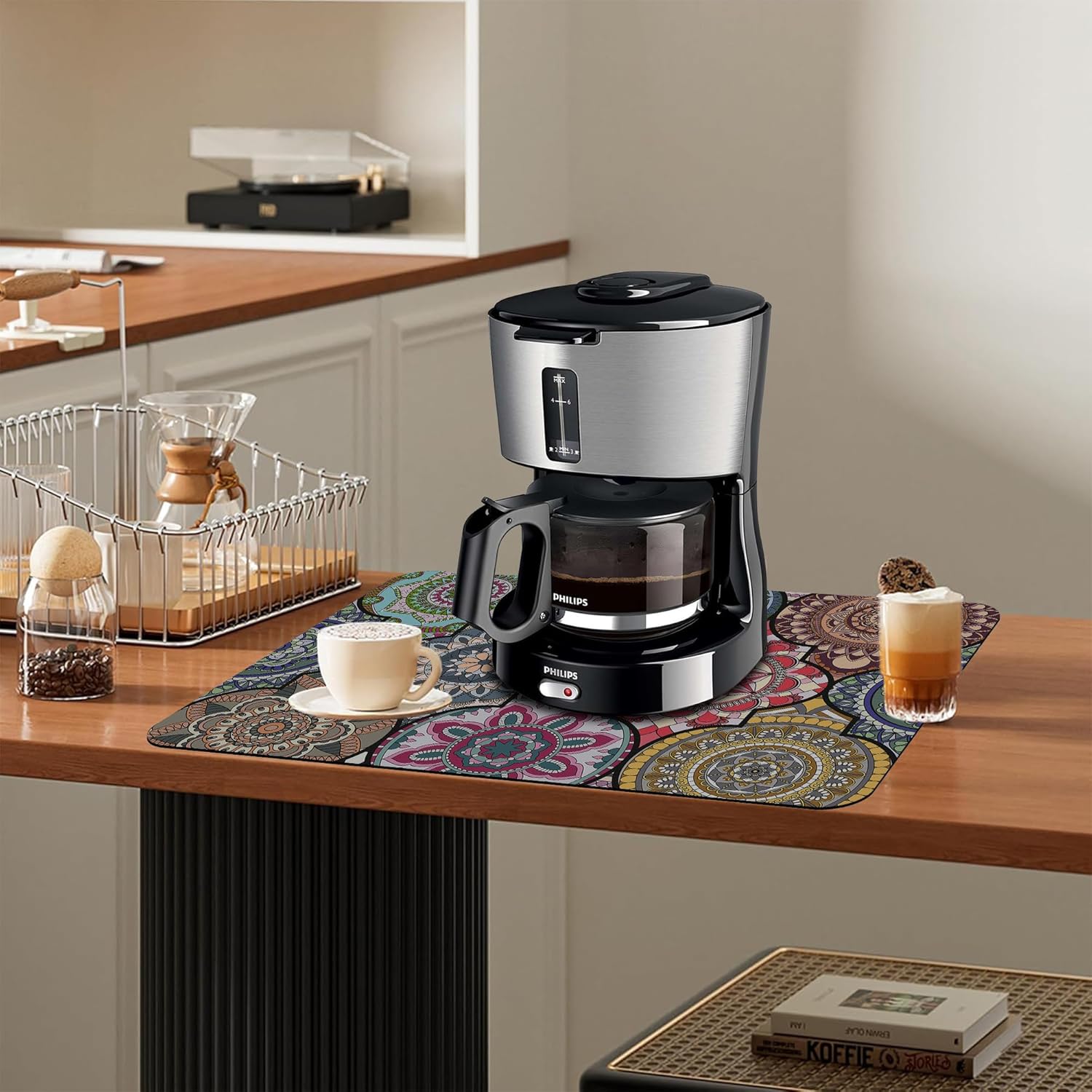 Dish Drying Mat Bohemia Vintage Decorative Pattern Kitchen Mat 12"x19" Bsorbent Coffee Maker Mat for Dishes,Utensils Coffee Maker Pots and Pans Easy Clean Dish Slip Resistant Pad