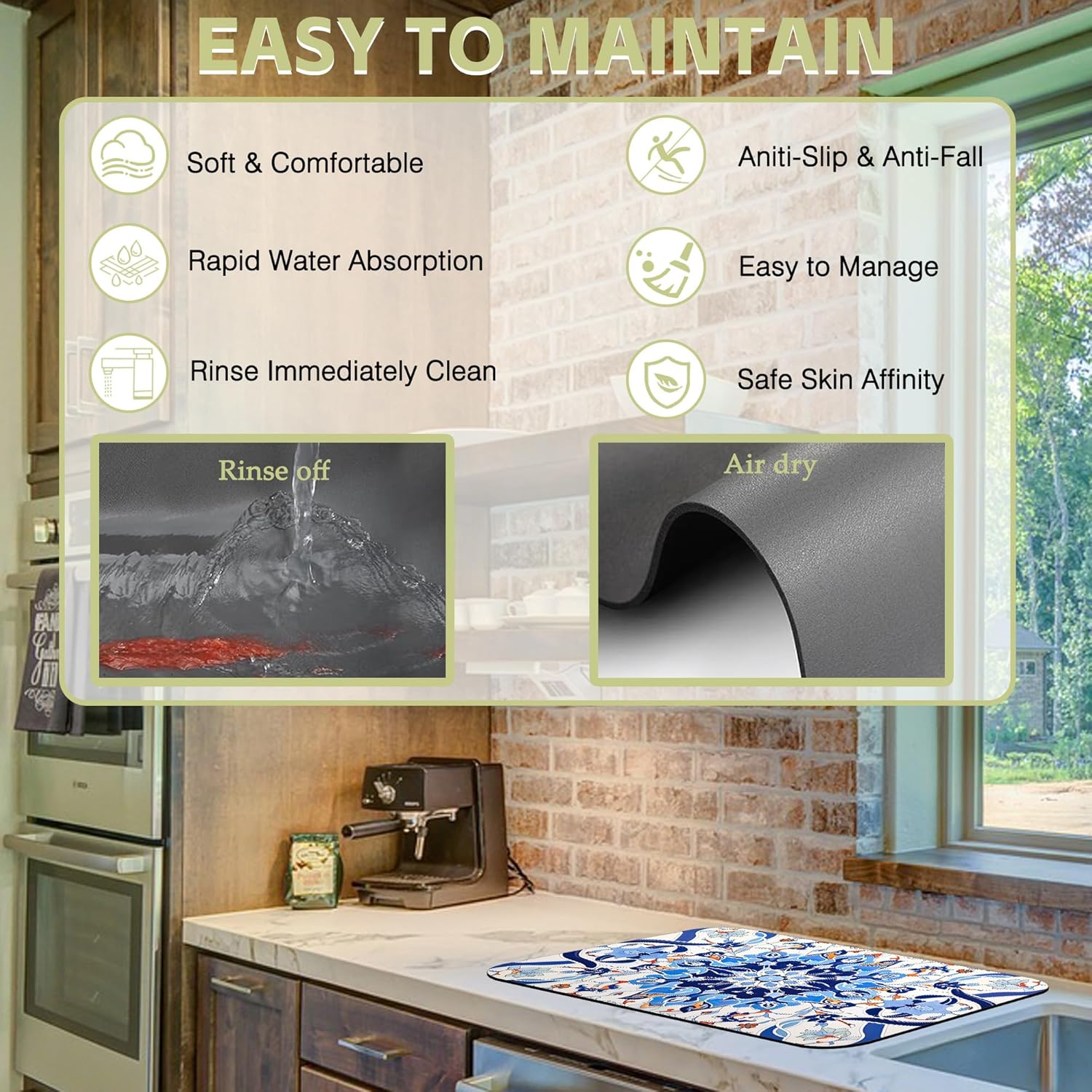- Easy to clean:This dish drying mat can be washed by hand or machine to remove stains,and can be reused many times,high-definition printed suede with excellent color locking effect,please do not use bleach to clean the mat