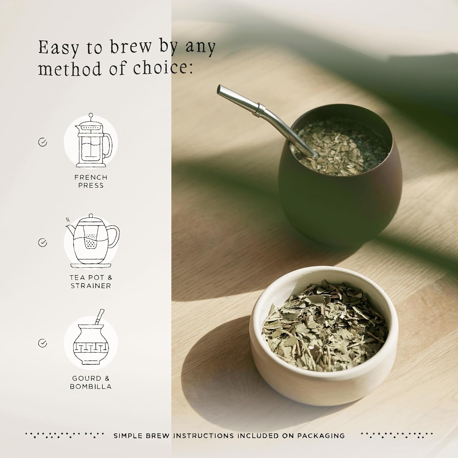 - SAME TOOLS, NEW BREW: Easy to brew by any method of choice whether in a French press, tea pot & strainer, or a traditional gourd & bombilla