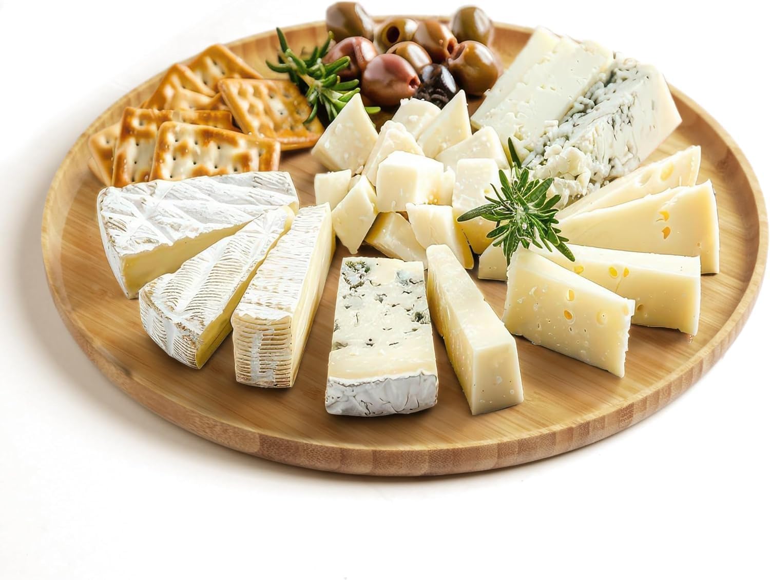 - Classic Design: The curved edge is smooth to hold as well as big that you can put enough food to enjoy. These Round Bamboo serving platters is also beautifully for storage and are easily stackable and just need wipe with a damp cloth after use, then store in air dry place. Please do not soak in water for long time and avoid direct sunlight as well.