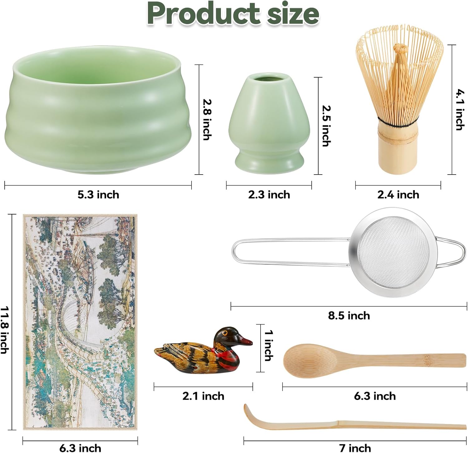 Japanese matcha set, matcha whisk and bowl, matcha sieve, matcha whisk holder, and matcha spoon - 8pcs Matcha Set (green)