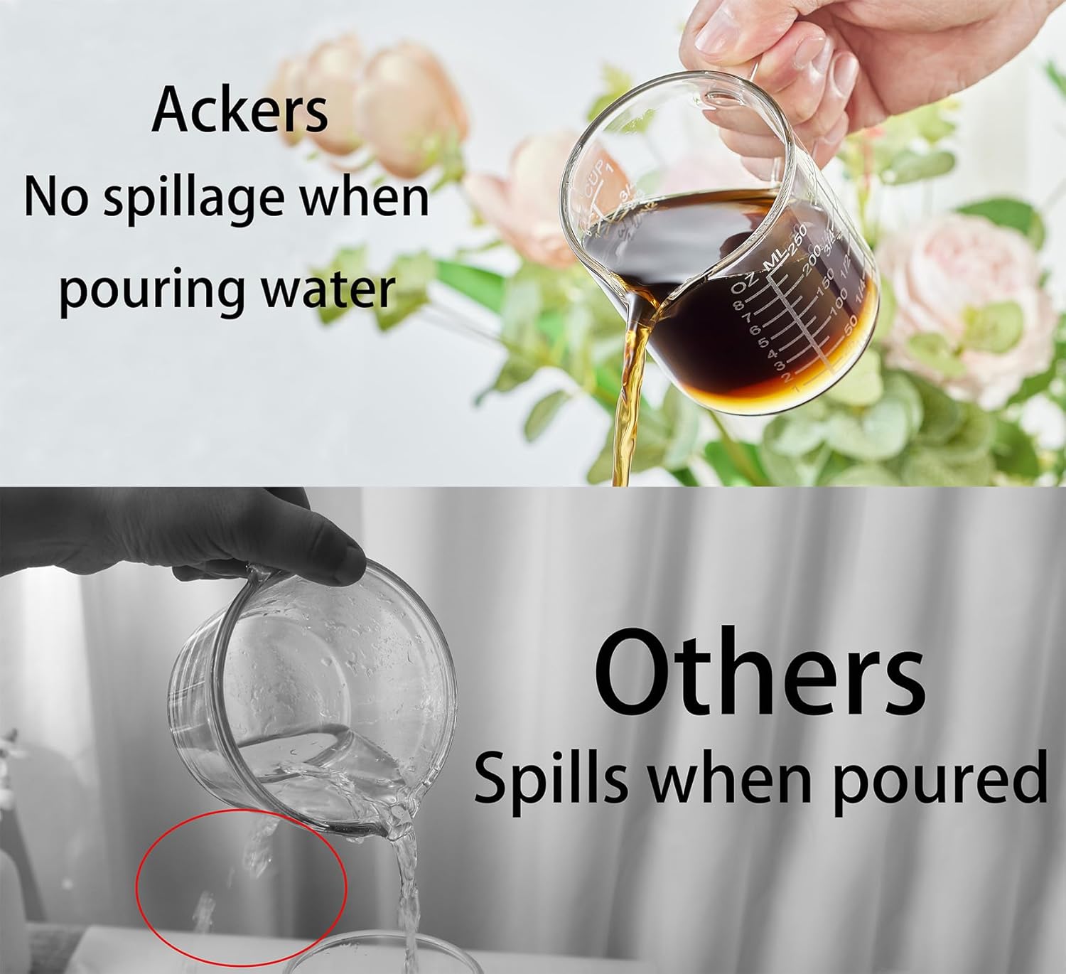 Ackers Mirror Scale Glass Measuring Cup-[Insulated handle | V-Shaped Spout]-Made of High Borosilicate Glass Measuring Cup for Kitchen or Restaurant, Easy to Read, 250 ML (8 Oz, 1 Cup)