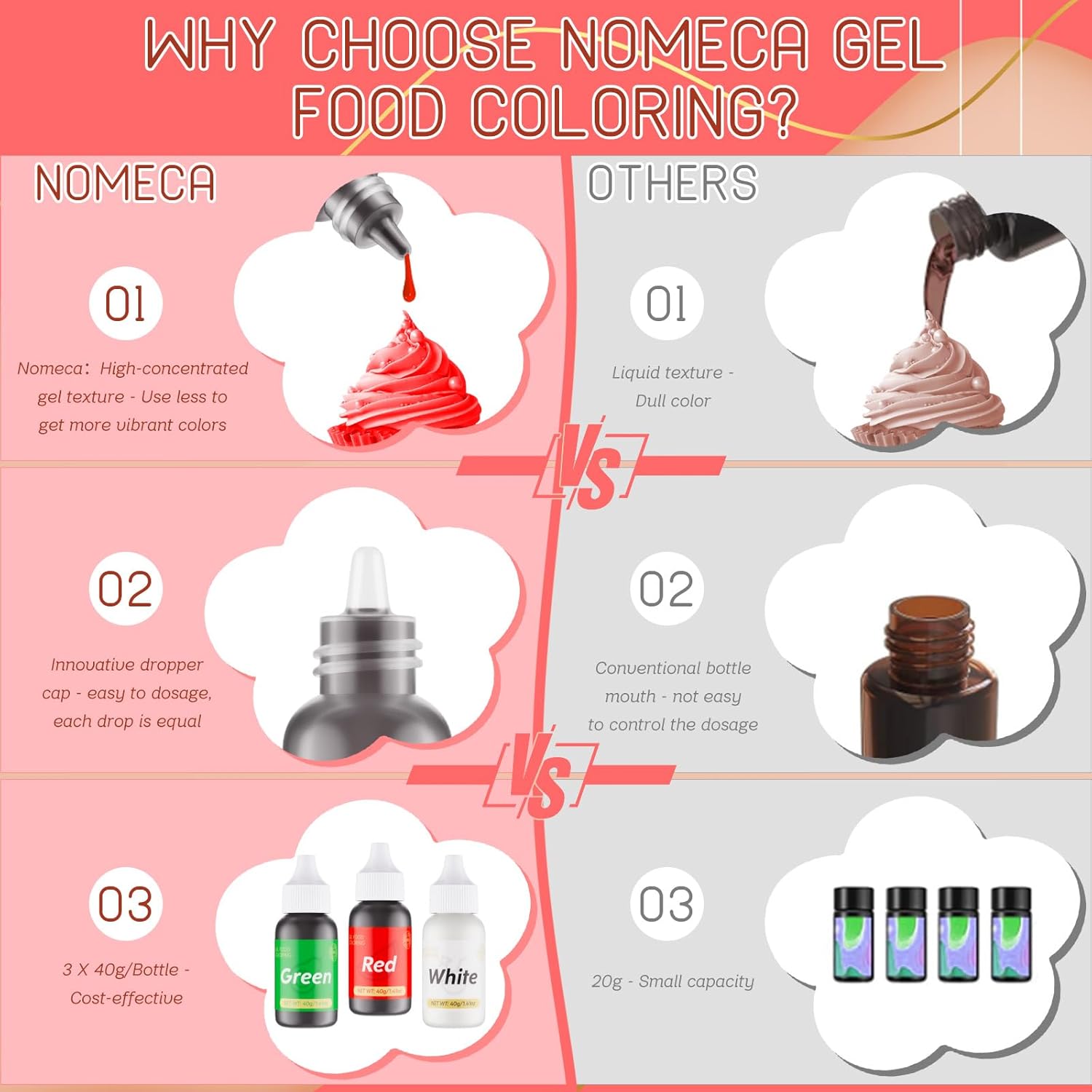 - Easy to Use and Control - The upgraded bottle cap design makes it easy to dispense the exact amount of color you need, so you can achieve the perfect shade every time. The liquid gel texture makes it easy to flow and control to customize your exclusive color. Each drop provides a high impact color, bring you the double enjoyment of sight and taste