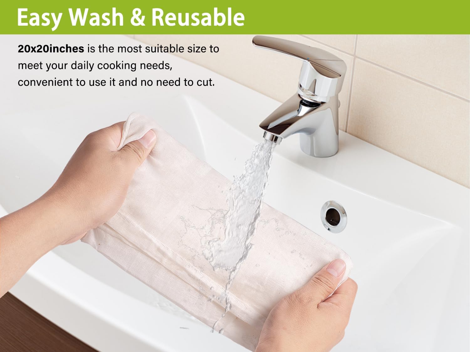 - 20x20Inch Pre-cut Suitable Size - No need to cut manually. Well Hemmed & No Shed Lint - Prevent small threads drop in the food. Easy Clean - Reused many times with a simple rinse, finally worn it out, then compost it.