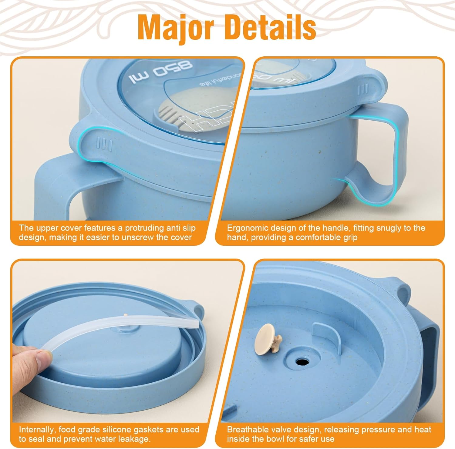 - ⚠️If there are stubborn stains, they can be cleaned with baking soda powder.⚠️NOTE:When heating food in the microwave, be sure to pull up the silicone part of the steam outlet keep the vent open。