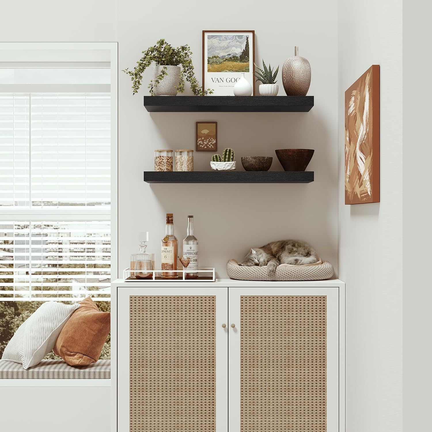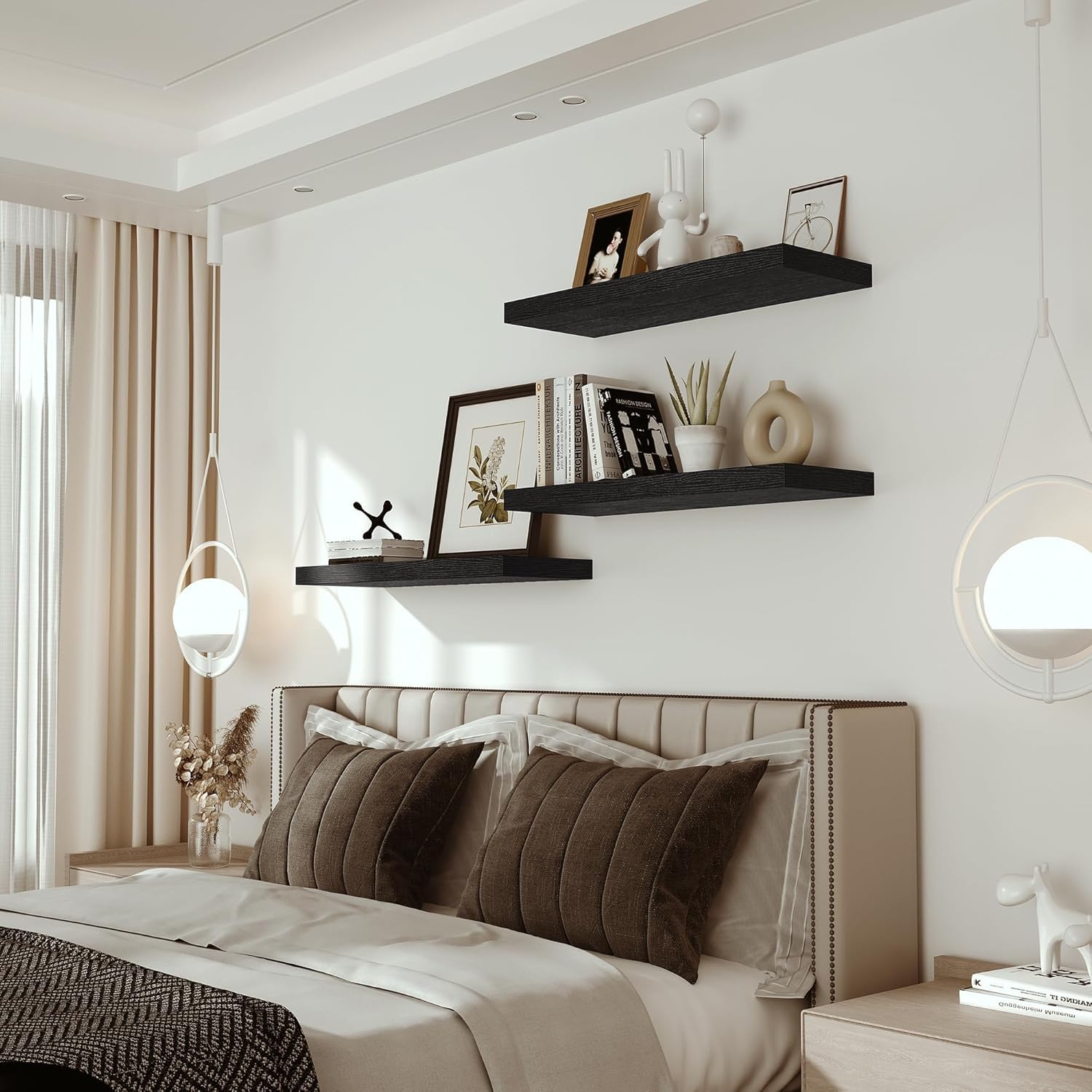 Vivelove Black Floating Shelves for Wall Mounted, 24 inchs x 9.1” Deep x 1.6” Thick Wall Shelves for Bedroom, Living Room, Bathroom,Kitchen, Office, Home Decor Shelf with Invisible Bracket - Set of 2