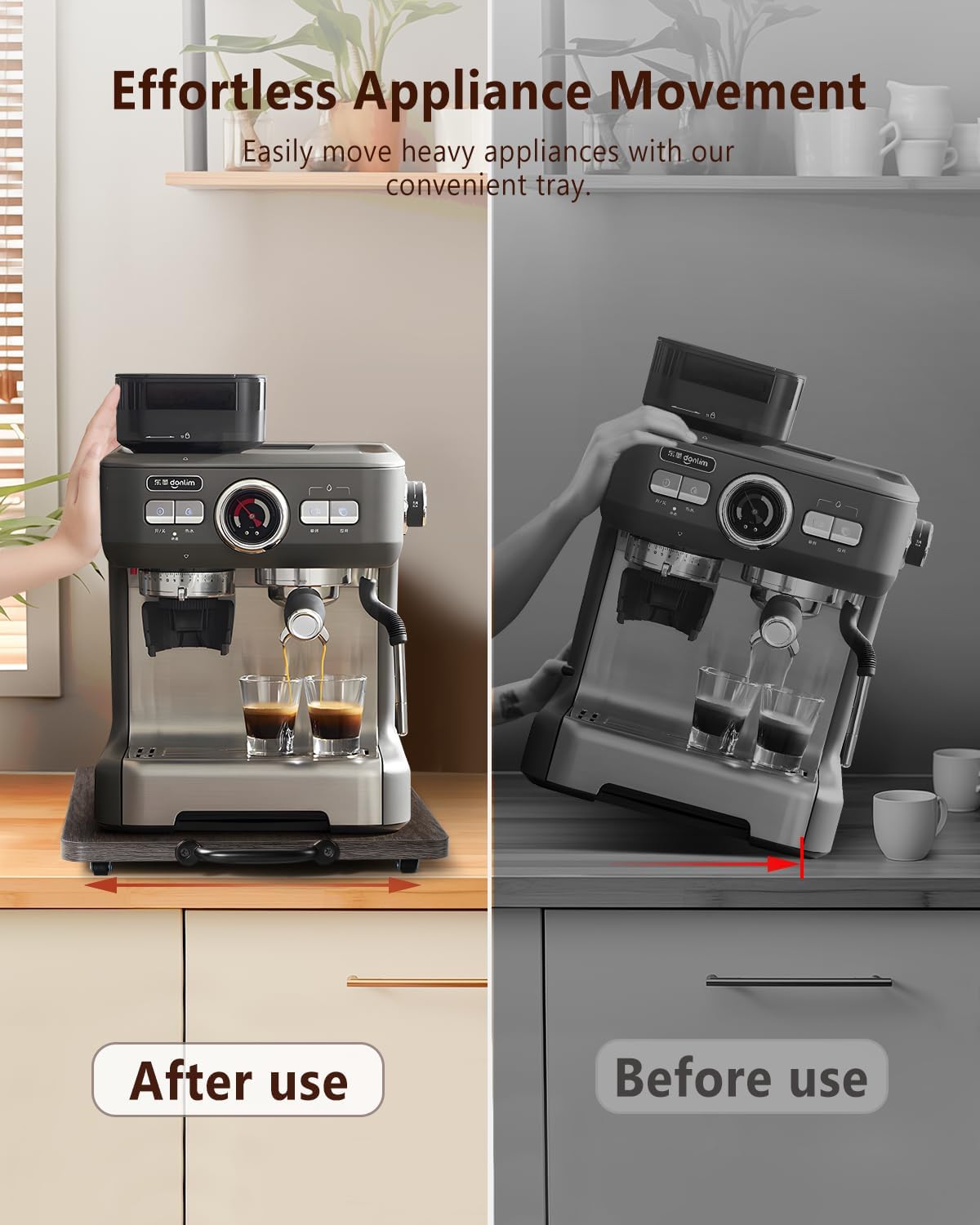 - Streamline Appliance Handling: Effortlessly move appliances with our Appliance Tray; equipped with appliance sliders for kitchen appliances; ideal as a coffee tray for countertop; ensures quiet, easy movement and a smoother kitchen experience