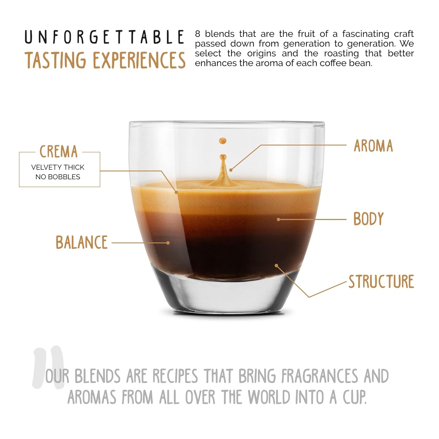 - Chocolaty and Intense Flavor Profile: With an intensity of 8/10, GranAroma delivers a bold and persistent coffee experience. This skillfully blended combination of Arabica and Robusta beans features rich hints of cocoa, spices, and dried fruit, creating a coffee that is both complex and satisfying, perfect for those who enjoy a strong and indulgent brew.