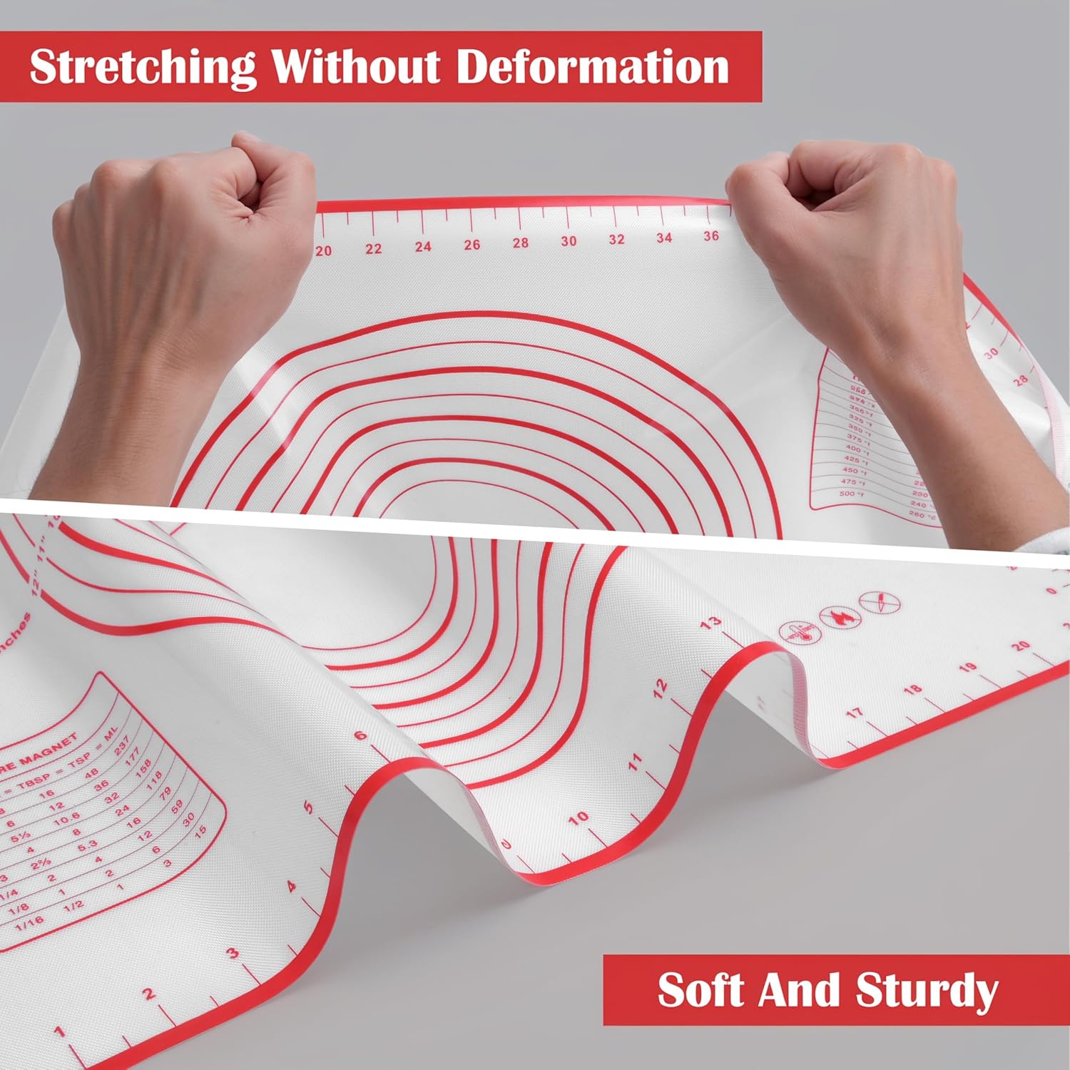 - 【Durable & Non-Slip Bottom】:The non-slip bottom of the pastry mat will obediently stick to the tabletop, providing enough sassafras for non-slip as you knead the bread, and you can roll, knead, and cut the dough on the silicone baking mat.