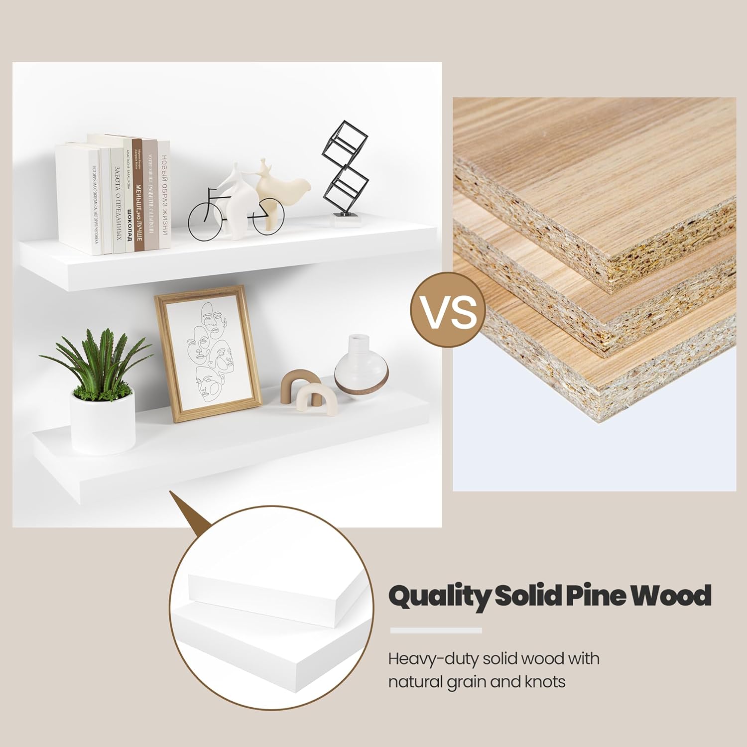 - Premium Wooden Floating Shelves -Unlike others, they are beautifully-finished, fantastic-smelling solid pine,and they are handcrafted out of finest solid pine wood measuring 16" x 8" x 1.38",revealing its own character of knots and natural wood grain, making each ledge a little different but equally stunning.