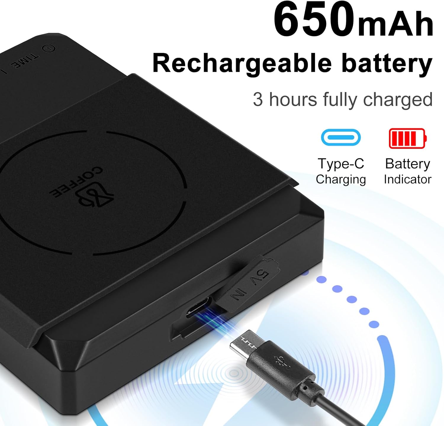 - Rechargeable Convenience: Long-lasting 650mAh lithium battery with smart battery indicator. Recharge via included Type-C cable for a hassle-free brewing experience.