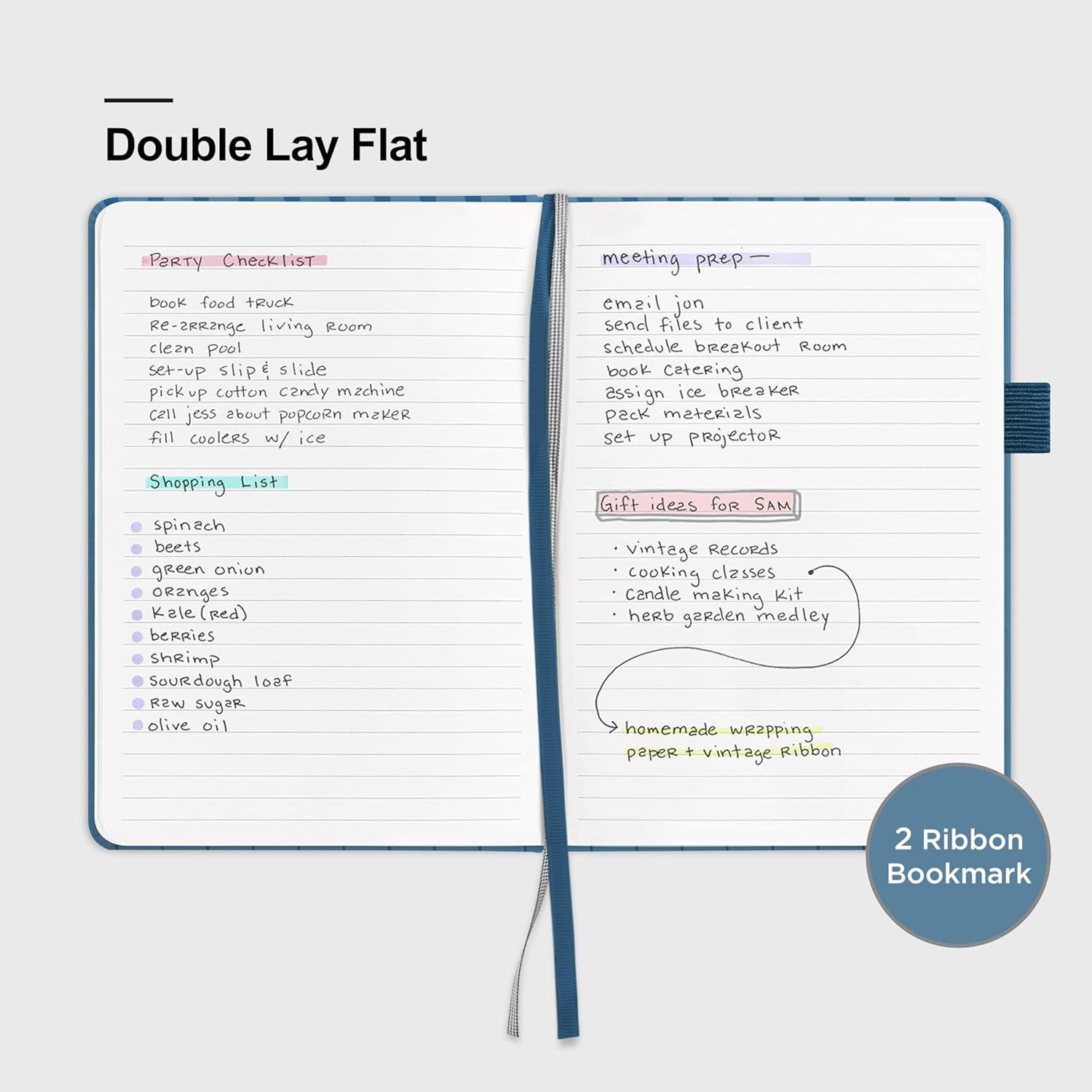 - 180° LAY-FLAT DESIGN: The lay-flat design allows for easy writing and ensures that you can utilize every page efficiently. Journaling, note-taking and planning has never been easier. 2 Bookmarks help you find important content faster.