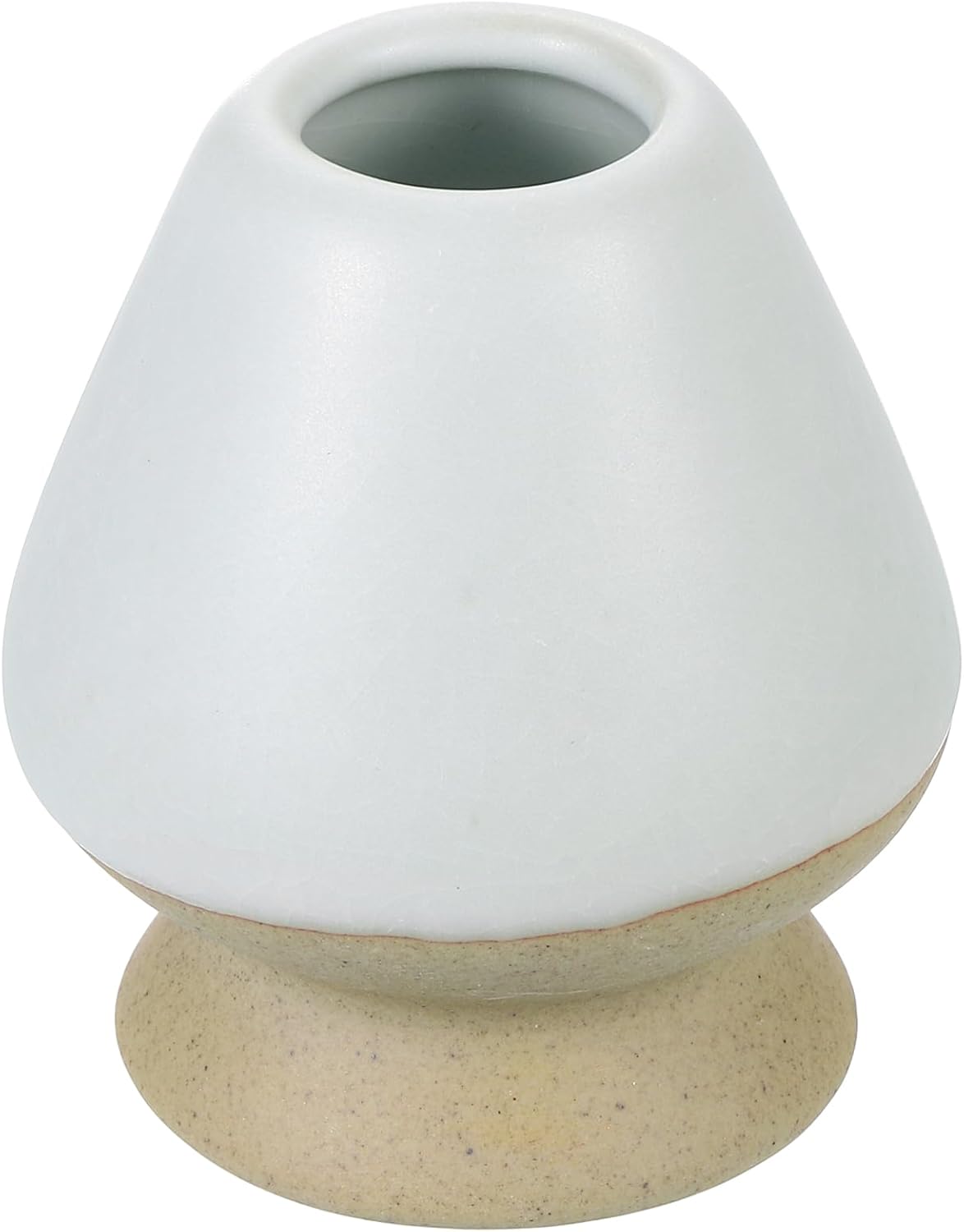 HARFINGTON Ceramic Chasen Stand 65mm Matcha Whisk Holder Teas Set Whisks Stand Traditional Matcha Tea Chasen Holder Tea Set Accessories for Tea Tasting, Gray White