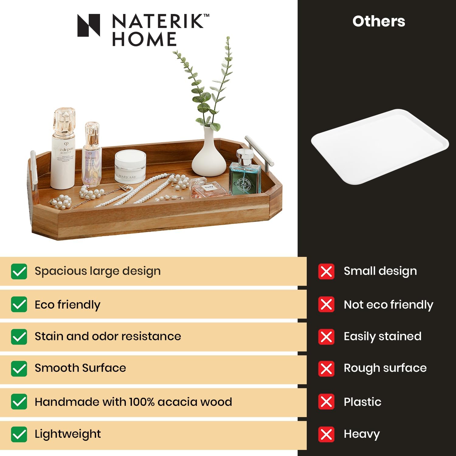 - Versatile & Functional Design: Its odorless wood ensures a clean and pleasant experience, while the premium color finish highlights the rich, natural tones, making it a stylish and functional addition to your living room, kitchen decor, coffee table, or home bar. Great for use as a snack serving tray, drink tray for ottoman, or serving platter for parties