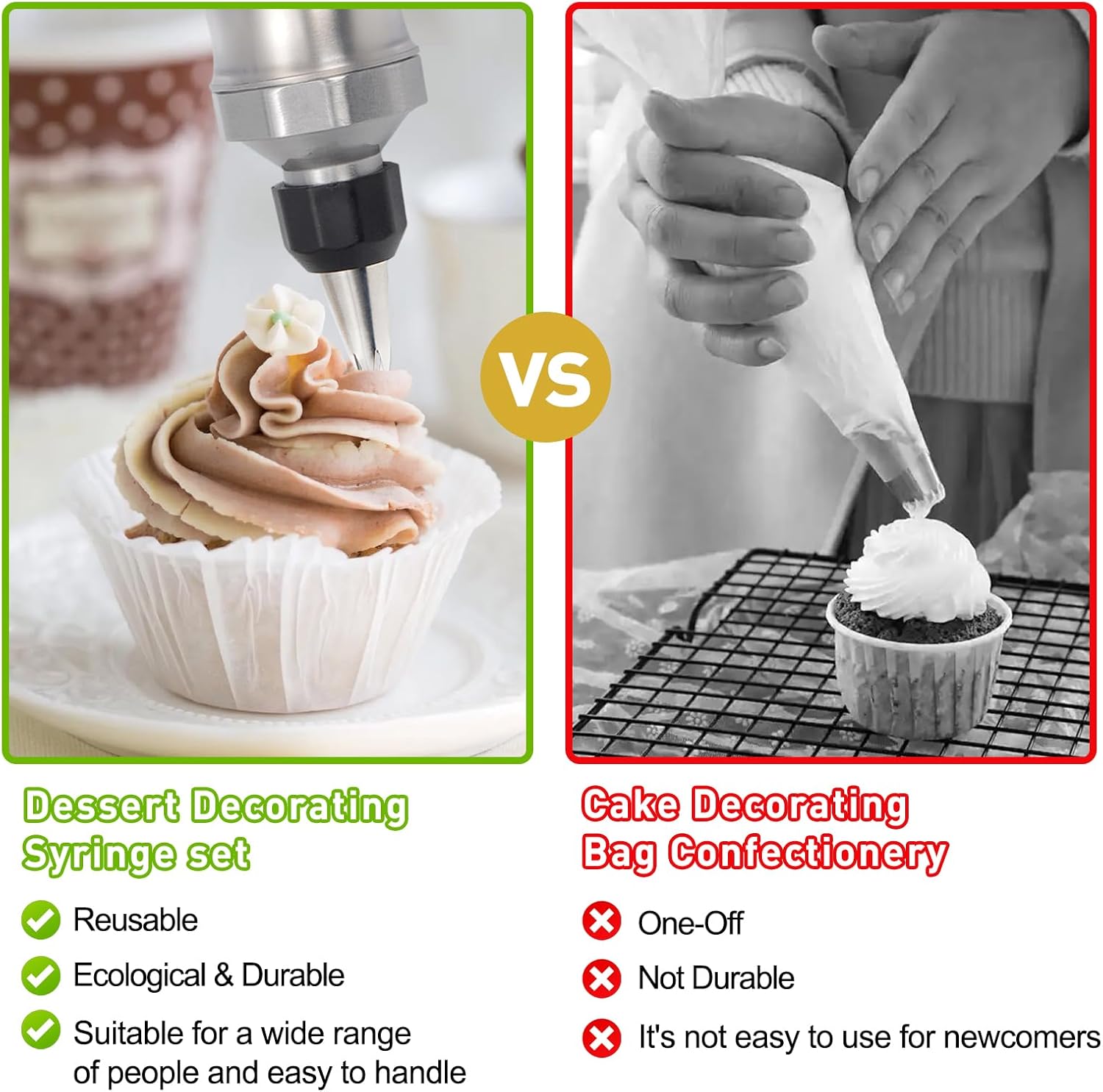 - 【Food-Grade & Durable Materials】 Made of stainless steel (rust-proof) and heat-resistant ABS plastic, this icing piping kit is non-toxic and dishwasher-safe. Smooth surfaces prevent clogging, perfect for cake decorating tools and cupcake injector projects.