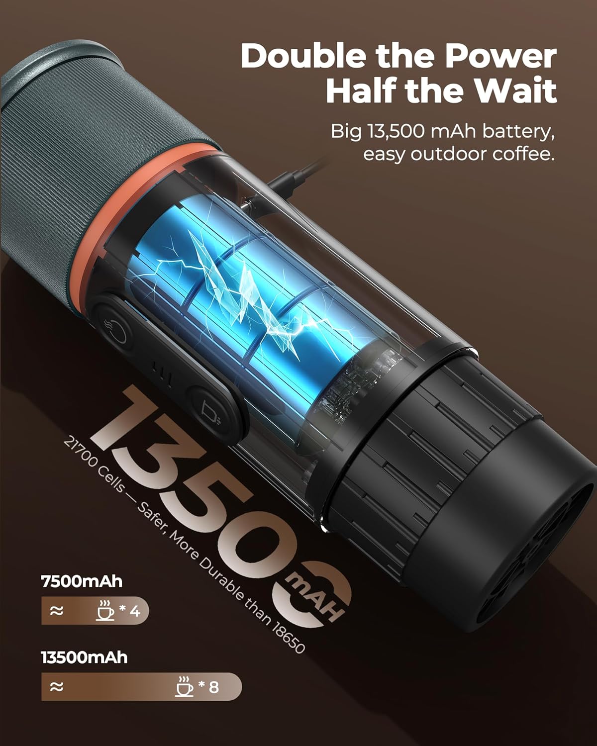 - 13500mAh XL BATTERY & BIG SAVINGS: Twice the power of 7000mAh rivals, it brews 8‑10×40mL shots or keeps lattes and iced coffee hot all afternoon, cutting a $5‑a‑day coffee habit to pennies—paying for itself in 3 weeks on road trips, hikes and tailgate parties.