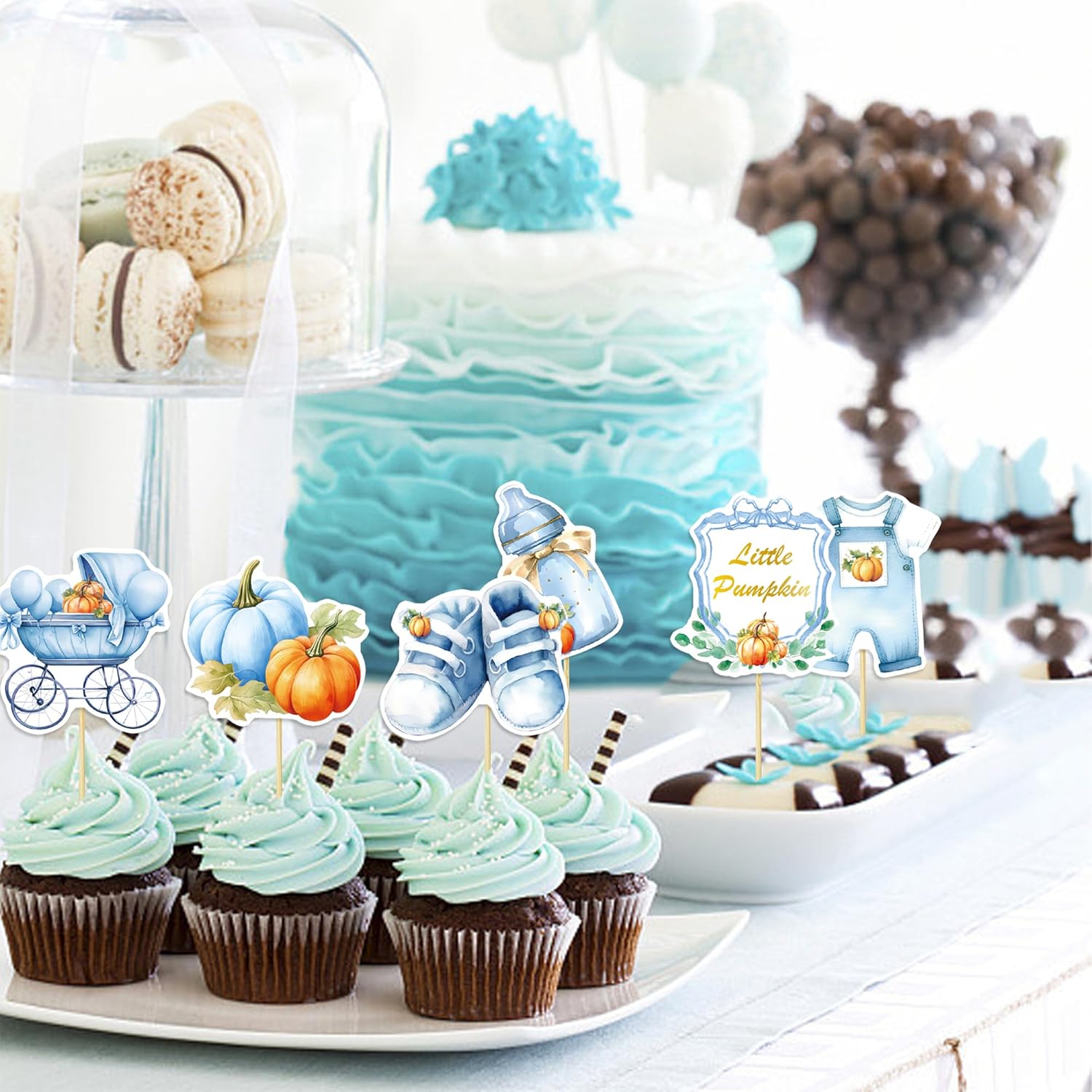 36Pcs Little Pumpkin Cupcake Toppers Blue Pumpkin Cupcake Picks Little Pumpkin Baby Shower Cake Decorations Thanksgiving Party Cake Decorations Kids Birthday Party Supplies
