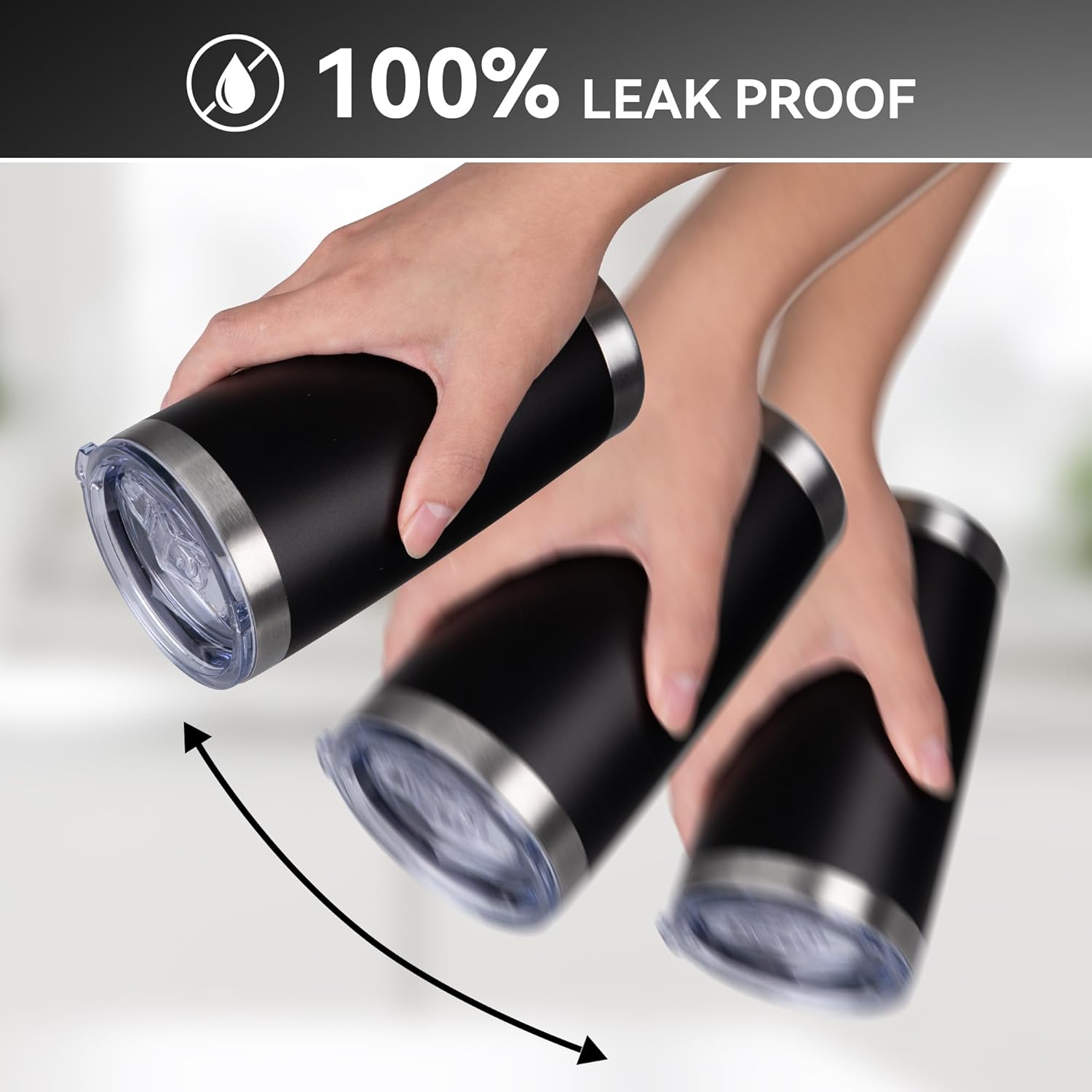 20 oz Tumbler Stainless Steel Tumblers Bulk with Lid Double Wall Insulated Coffee Tumbler Cups for Hot & Cold Drinks Powder Coated Travel Coffee Tumbler Mug Metal (Black, 12 pack)