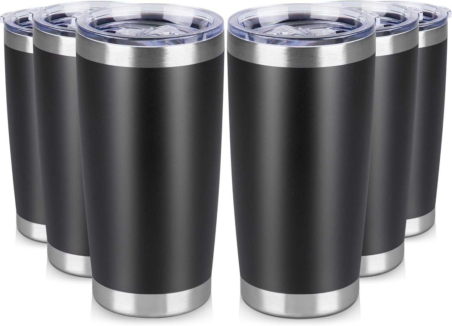 20 oz Tumbler Stainless Steel Tumblers Bulk with Lid Double Wall Insulated Coffee Tumbler Cups for Hot & Cold Drinks Powder Coated Travel Coffee Tumbler Mug Metal (Black, 6 pack)