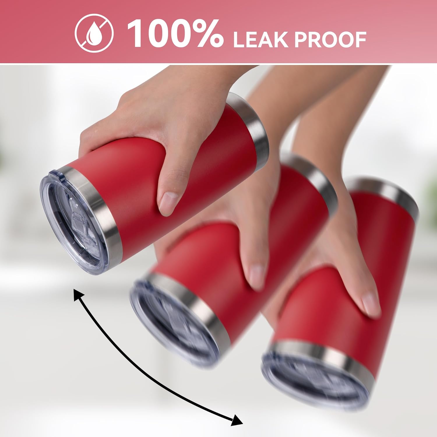 20 oz Tumbler Stainless Steel Tumblers Bulk with Lid Double Wall Insulated Coffee Tumbler Cups for Hot & Cold Drinks Powder Coated Travel Coffee Tumbler Mug Metal (Red, 6 pack)