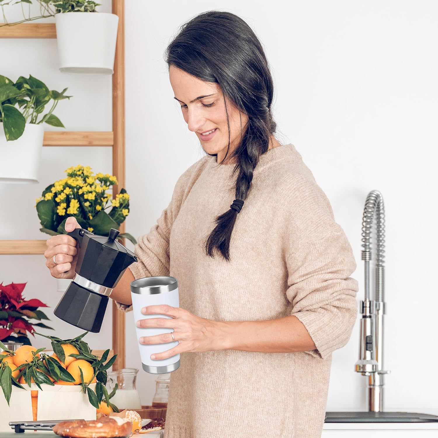 20 oz Tumbler Stainless Steel Tumblers Bulk with Lid Double Wall Insulated Coffee Tumbler Cups for Hot & Cold Drinks Powder Coated Travel Coffee Tumbler Mug Metal (White, 12 pack)