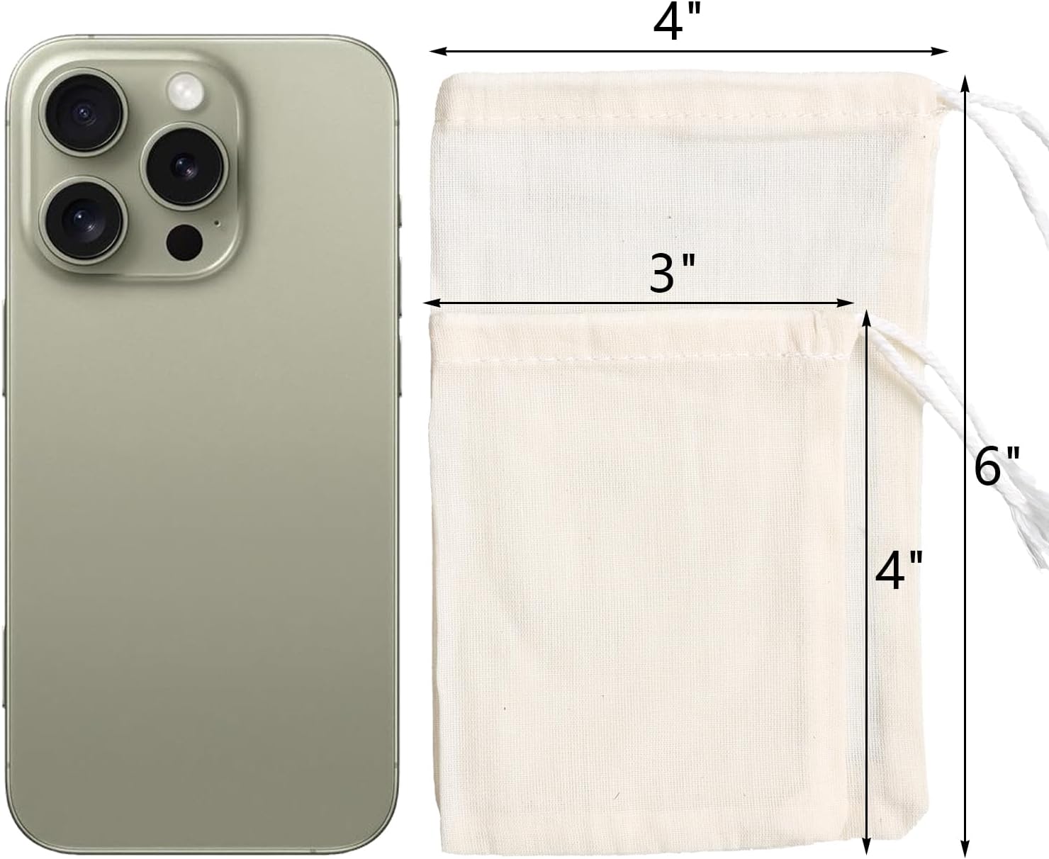 - Pure Natural Ununbleached Cotton: 5pcs 3x4inch and 5pcs 4x6inch tea filter bags. These spice bags are made from unbleached, food-grade cotton, tearing resistance, high-temperature resistance and odorless. Note: the tea filter bags have a few small black dots (cotton-seeds-hull) that won't fall off, due to the nature of pure natural ununbleached cotton.