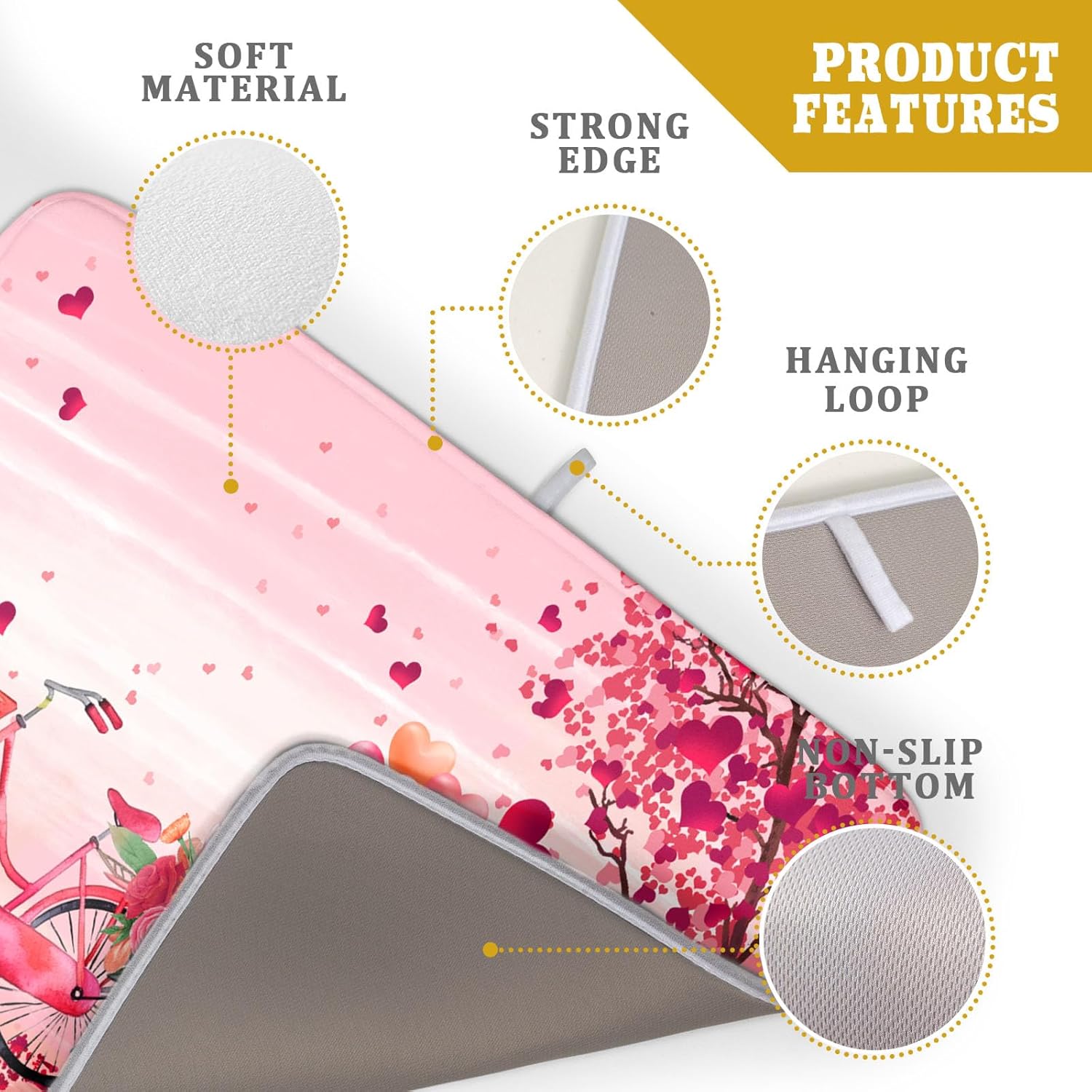 - 1【High Quality Material】:Our Valentine's Day drying mat is made of high absorbent microfiber and the middle is made of composite spongedurable, reversible do not fade and comfortable. At the same time, it can protect your kitchen counter from scratching by the tableware.