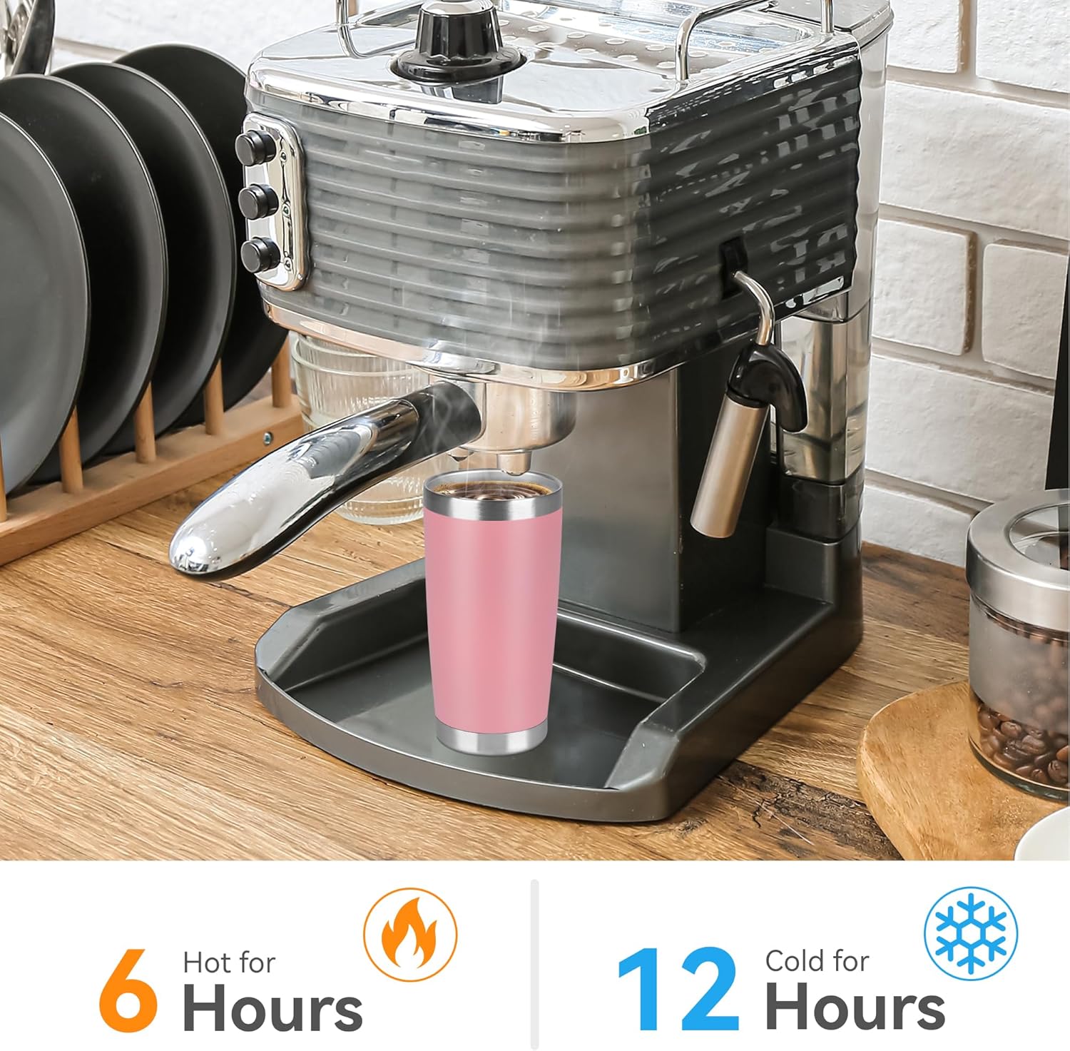 20 oz Tumbler Stainless Steel Tumblers Bulk with Lid Double Wall Insulated Coffee Tumbler Cups for Hot & Cold Drinks Powder Coated Travel Coffee Tumbler Mug Metal (Rose Pink, 6 pack)