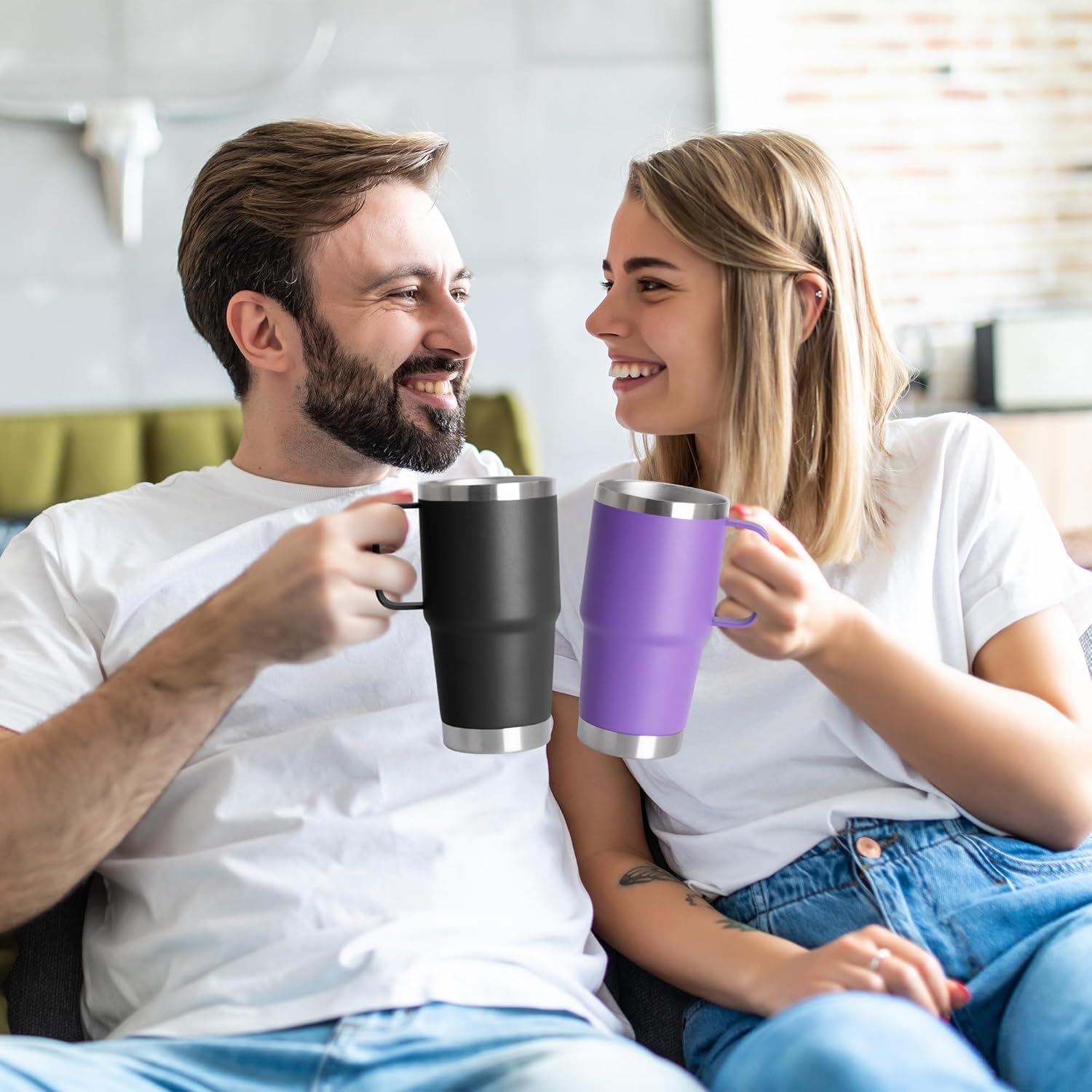 - Stainless Steel Tumblers with Handle:The 20oz coffee mug is made of thickened 304 stainless steel, liner of coffee mug will not produce any taste and will not rust.The cup comes with a sturdy welded handle for easy grip and ease of use