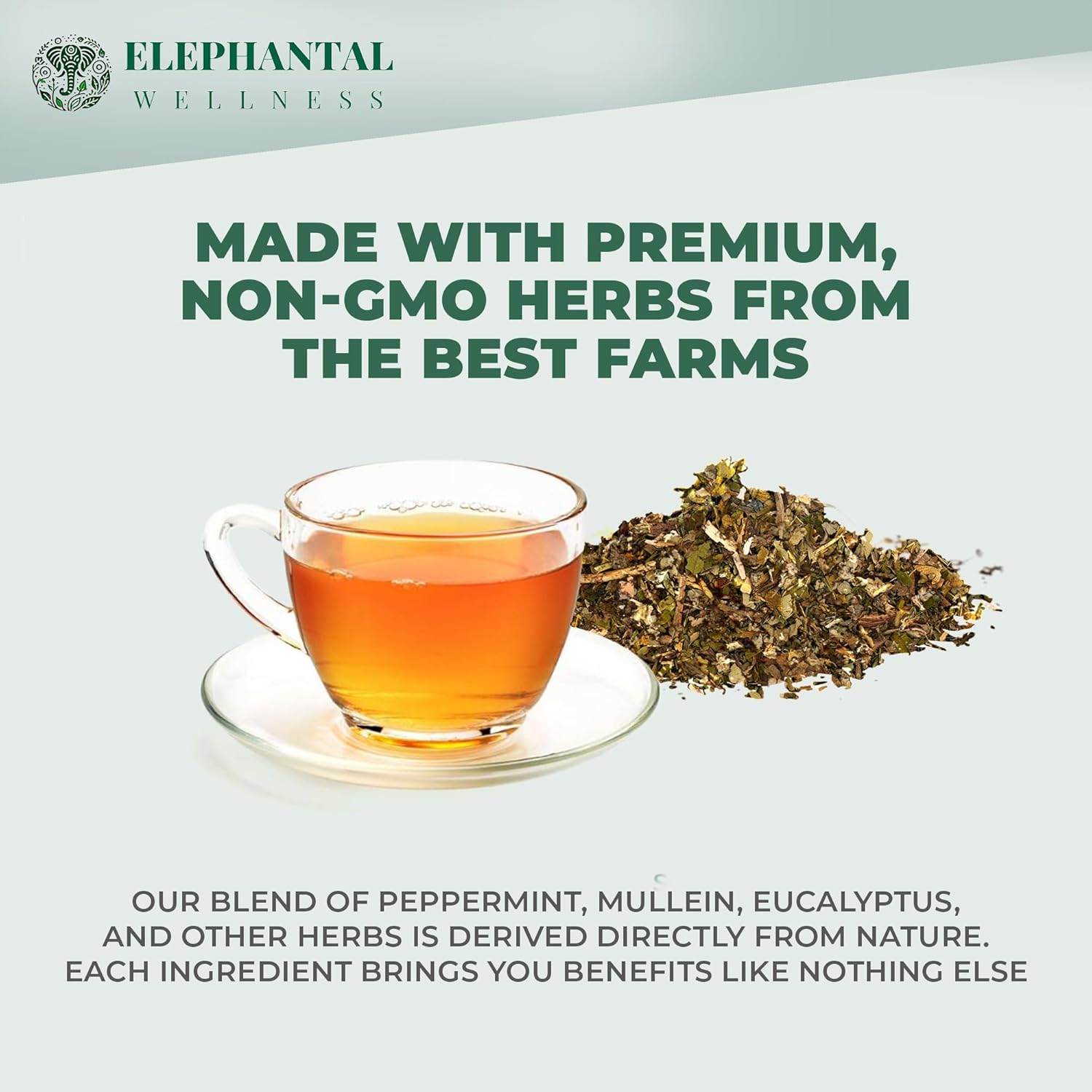 Elephantal Wellness Premium Respiratory Herbal Tea | Lung Detox, Mucus Cleanse & Breathing Support with Mullein, Eucalyptus, Thyme & Lungwort | Handmade, Caffeine-Free, Non-GMO Loose Leaf Blend, 2oz, 20 Servings