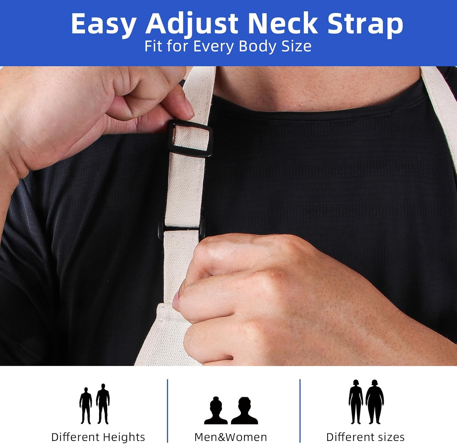 - Comfortable Fit – Adjustable for Every Body The cross-back straps reduce neck pressure and are fully adjustable for a perfect fit. Whether you’re tall, short, slim, or broad-shouldered, this apron adjusts to you. It’s great for long hours in the kitchen or at the grill.