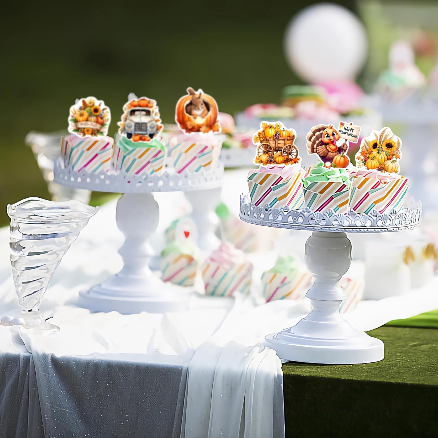 40 PCS Edible Wafer Paper Turkey Pumpkin Fall Theme Cake Picks Autumn Decorations for Thanksgiving Party