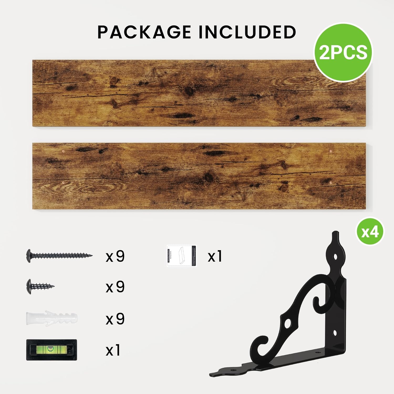 - Well-designed Floating Shelves: Our rustic deep floating shelves are made of high-quality particle board and sturdy brackets. The classic S-shaped metal brackets are designed to prevent sagging and ensure long-lasting stability. All edges are carefully sanded for a smooth finish